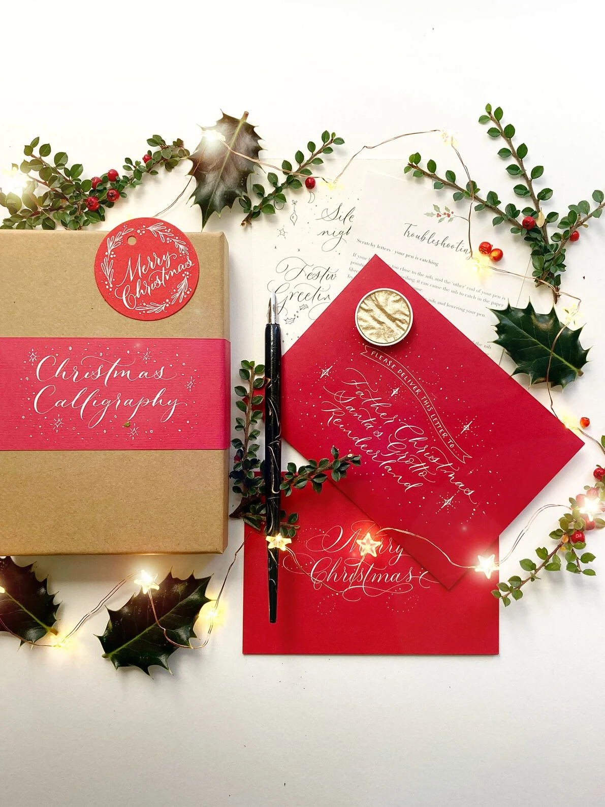 A lovely modern calligraphy kit, perfect as a Christmas gift. Includes loads of inspiration for all of your Christmas calligraphy projects.