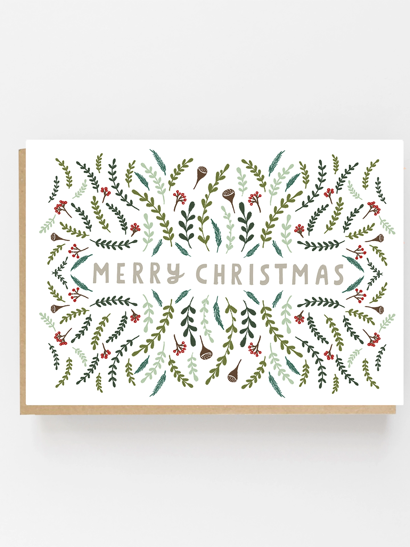 Merry Christmas Pattern Christmas card with a lovely taupe pattern surrounding the words Marry Christmas