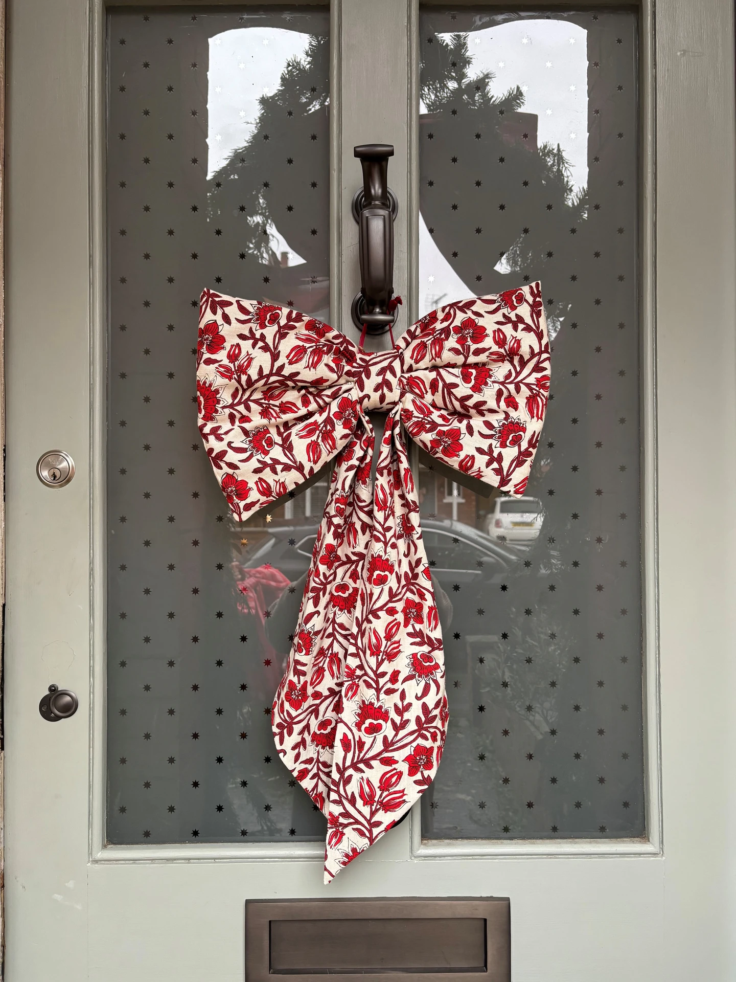 A beautiful oversized bow handmade from a beautiful red and ivory block print design fabric...