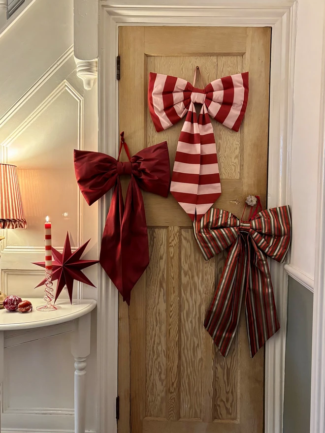 Hang on your front door, anywhere in the home or give as a gift! Our bows look fabulous on your Christmas tree, hanging above a mirror, on a banister or festive mantlepiece. These are timeless pieces that can be used all year round - a bow is not just for Christmas!