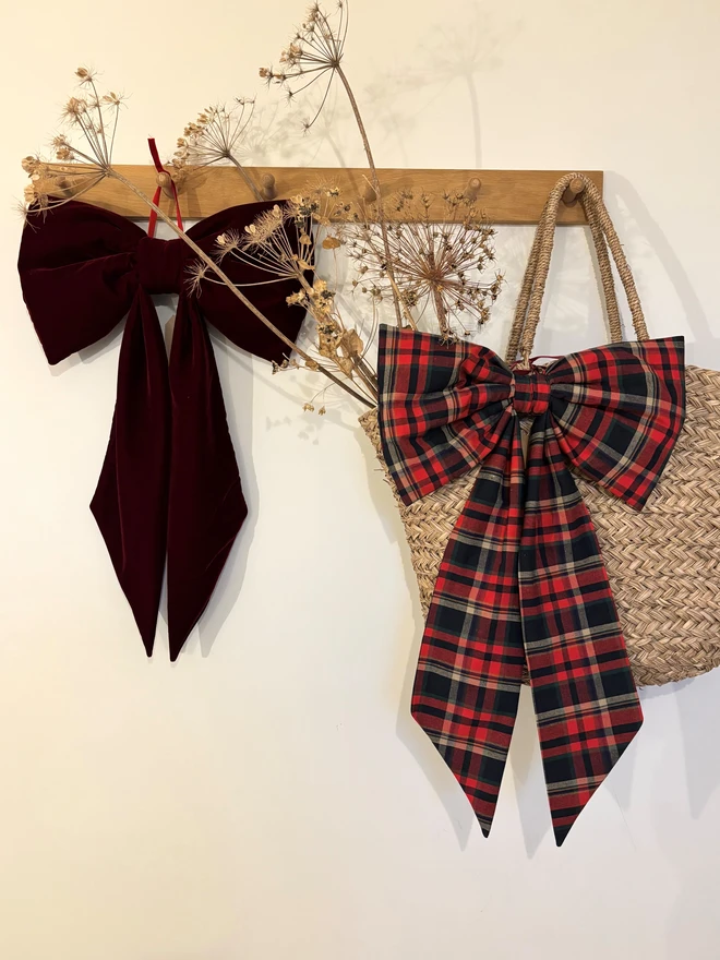 A beautiful oversized bow handmade from a striking festive tartan cotton fabric.