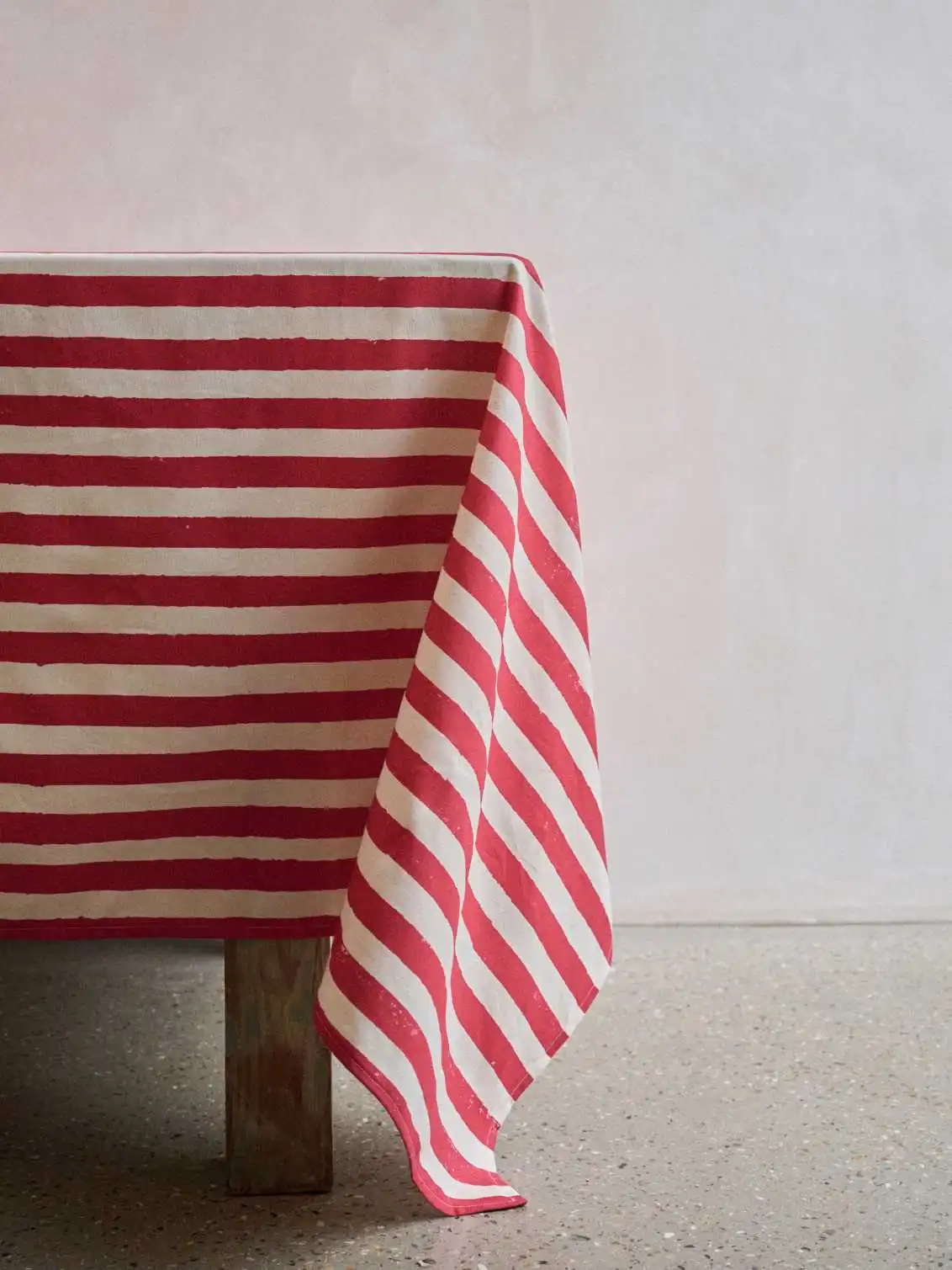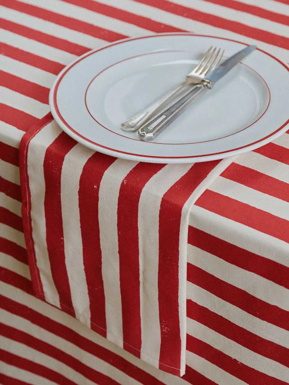 Our Christmas Red Stripe Tablecloth brings warmth and understated joy to the holiday table. With rich red stripes on a beautiful cotton, it’s bold yet timeless, made for Christmas feasts, cosy breakfasts, and everything in between.