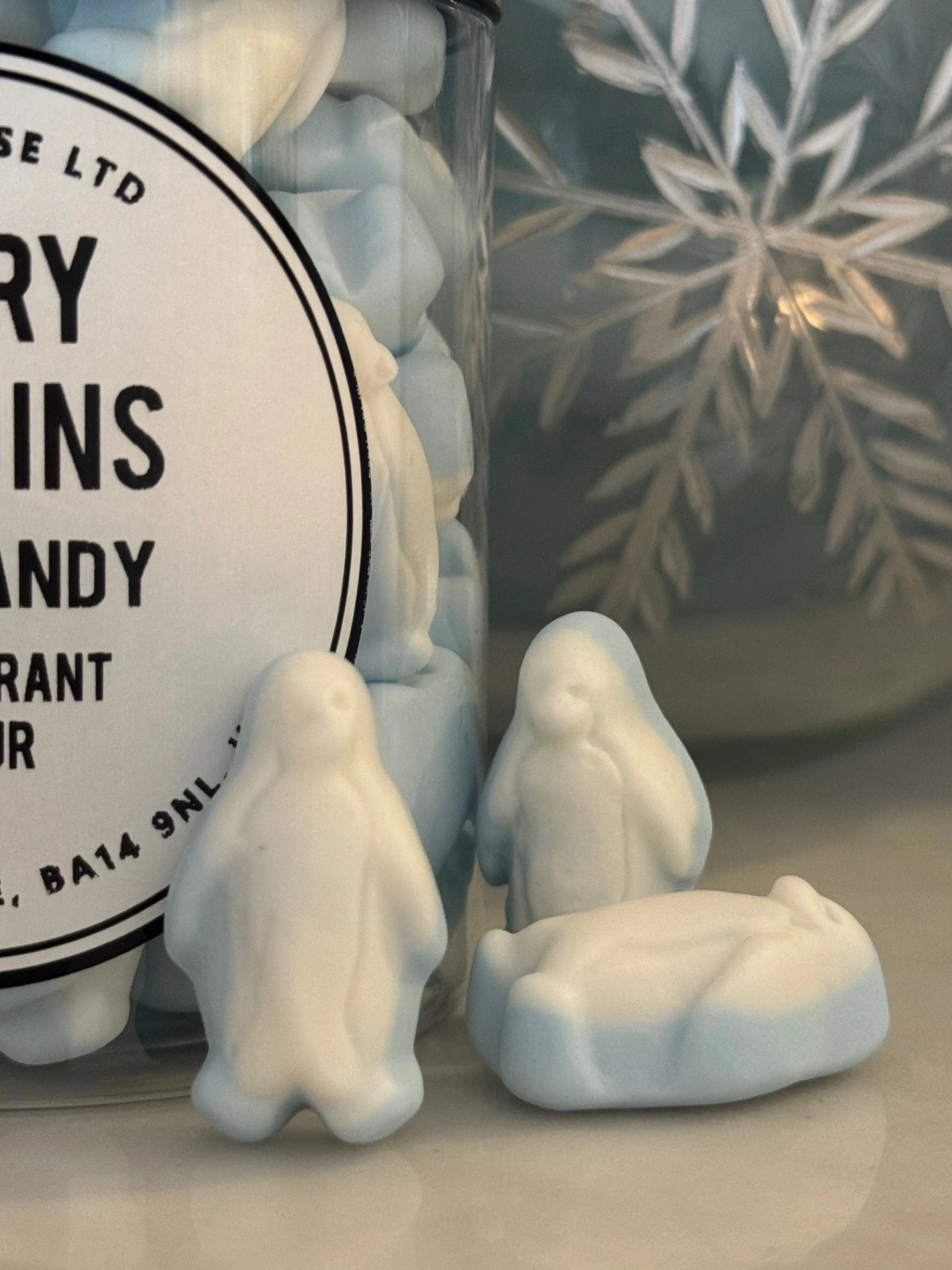 Select the from the gummy Gingerbread Men, Candy Canes, Strawberry Pencils, Christmas Trees, Jolly Jelly Beans, Apple Baubles (Vegan) or Merry Penguins.