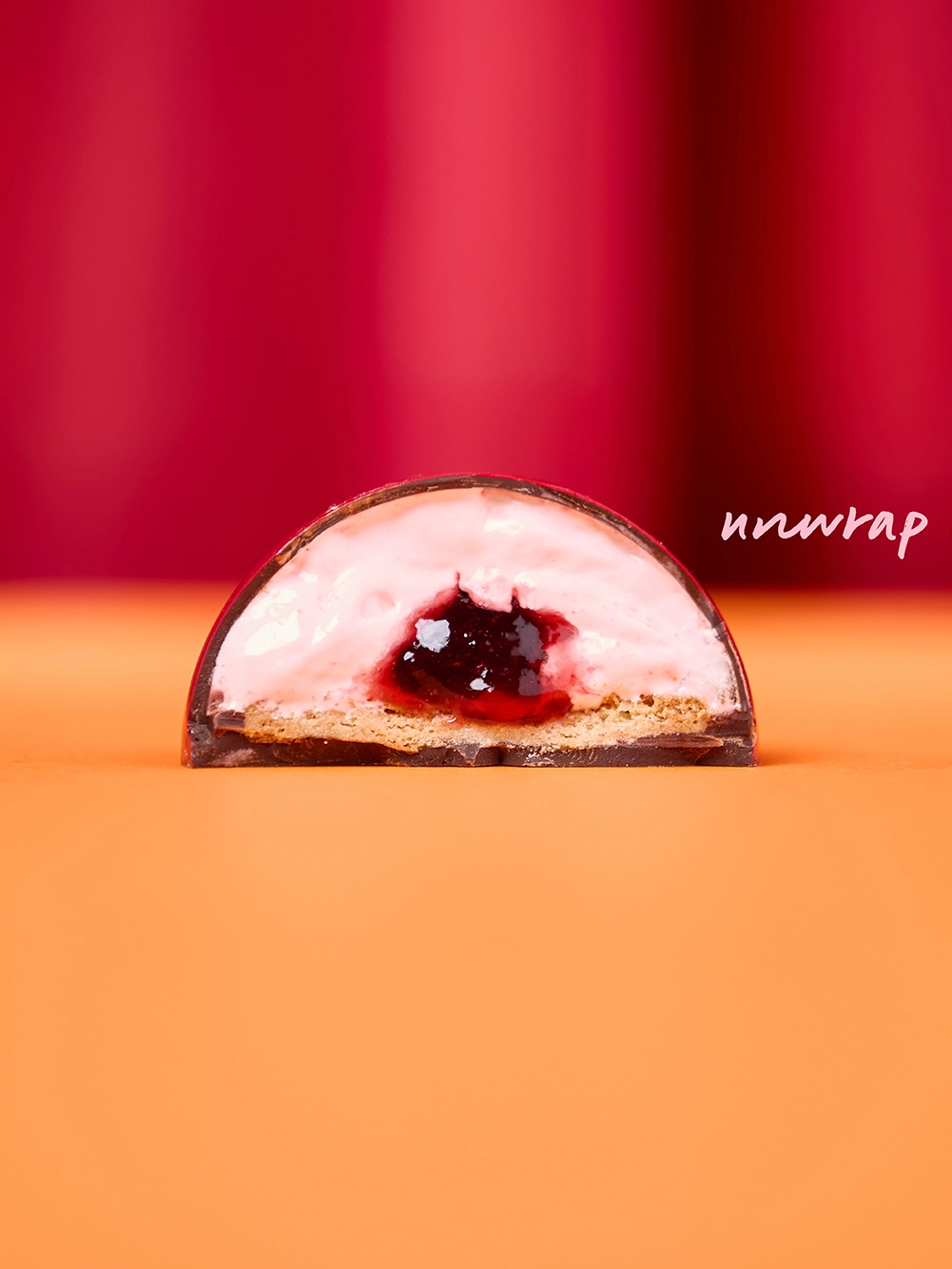 Rich cherry bauble - velvety black cherry centre wrapped in cherry mallow and encased in a sleek chocolate shell.