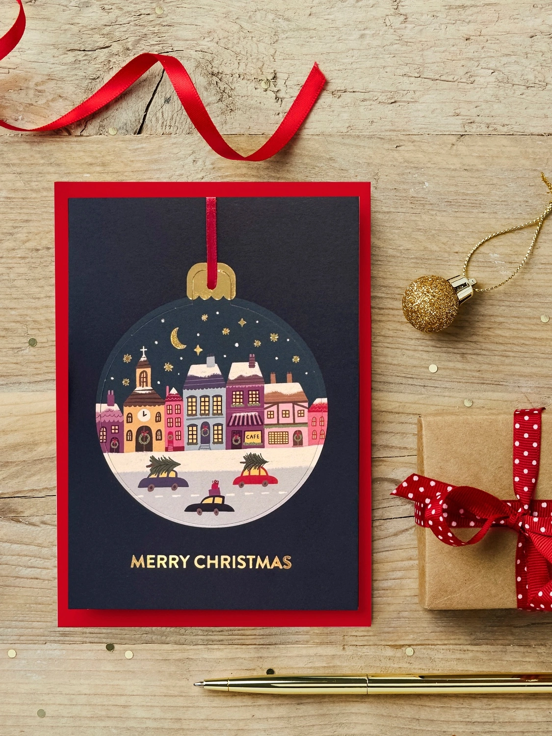'Christmas Town' Pop Out Bauble Christmas Card