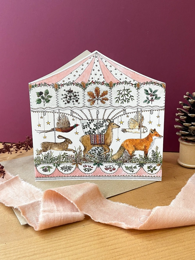 Christmas Woodland Carousel - Die Cut Card