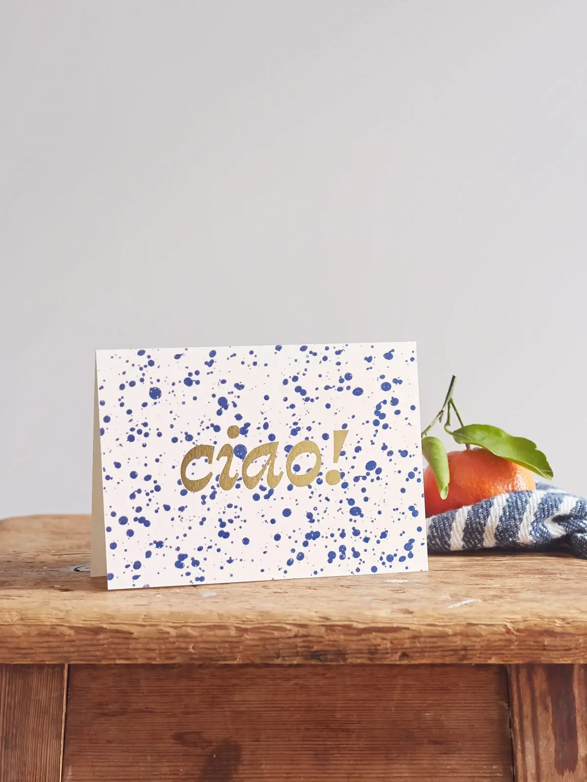 This card is hand-stamped with the word ‘Ciao!’ the Italian way to say hello, making it perfect for keeping in touch, sending a little note, or just brightening someone’s day.