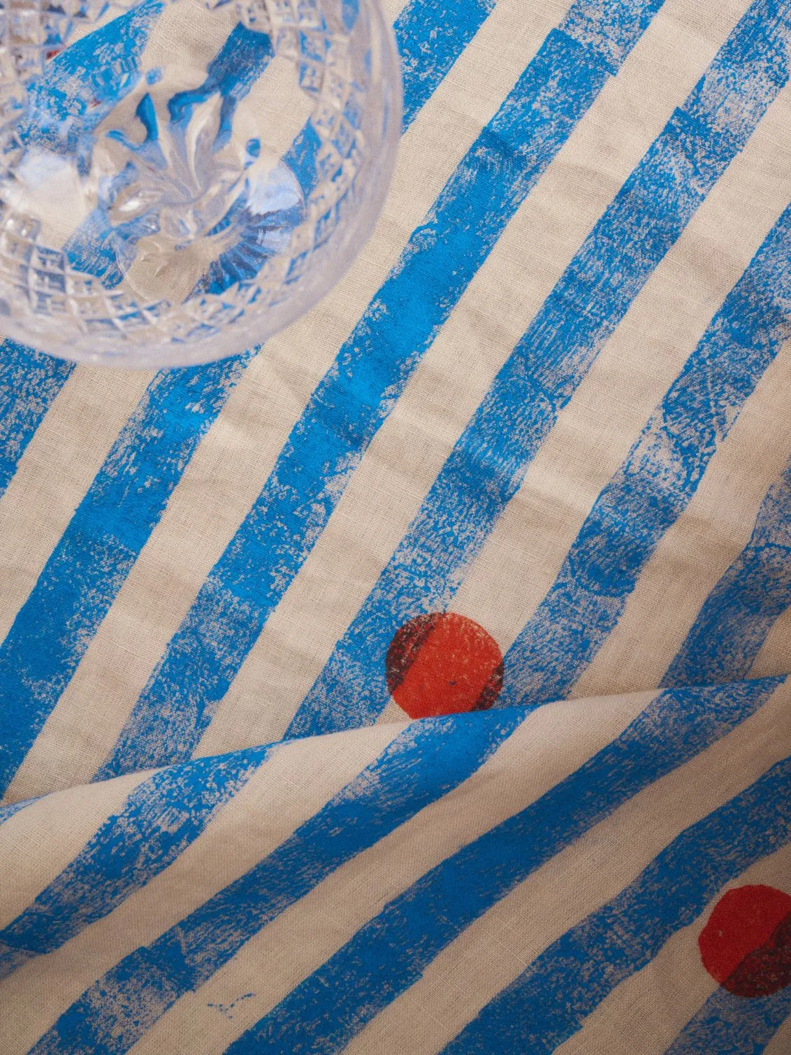 Cirque Bleu, the brother to Cirque. A blue-striped tablecloth infused with timeless nostalgia...