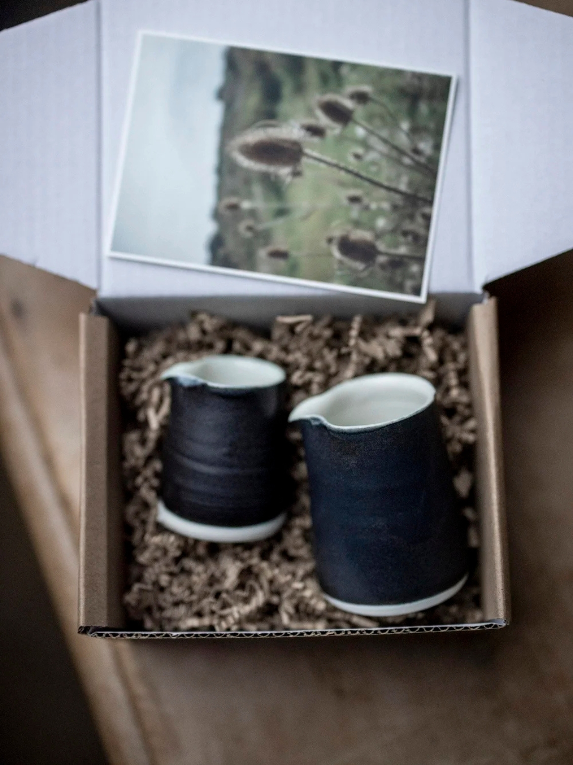 Our bestselling Clevedon jug is also available in this black porcelain handless set, that makes a beautiful and unique gift for cooks. Understatedly elegant, these modern little jugs are wonderfully versatile. I keep a pair on my kitchen shelves and use them endlessly.
