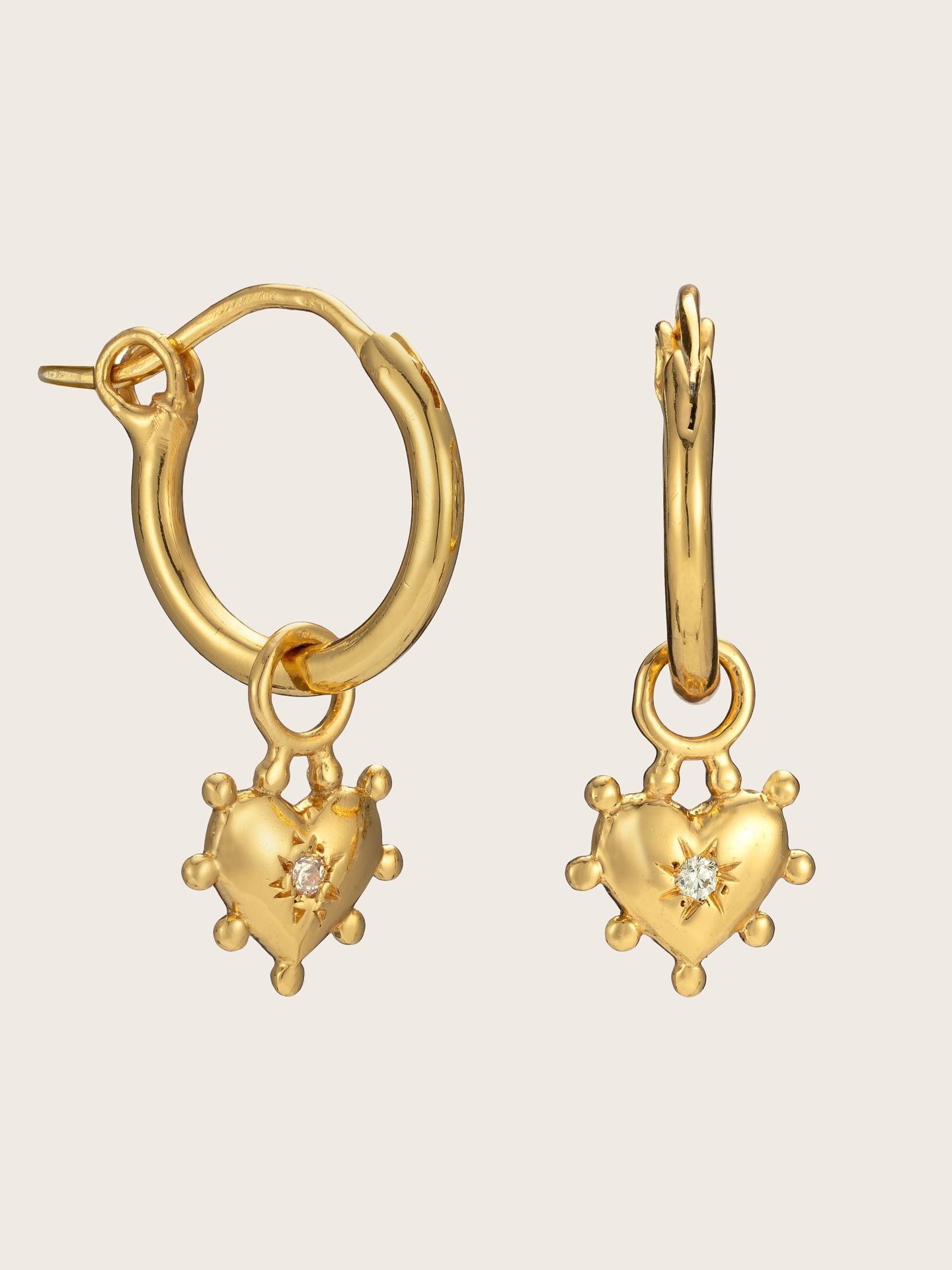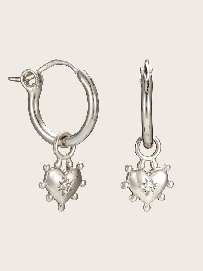 Our gorgeous Coeur Earrings have our bobble heart charm dangling beautifully- this charm can be easily looped off and swopped with any of your other charms- spikes, hearts, stars, droplets and more