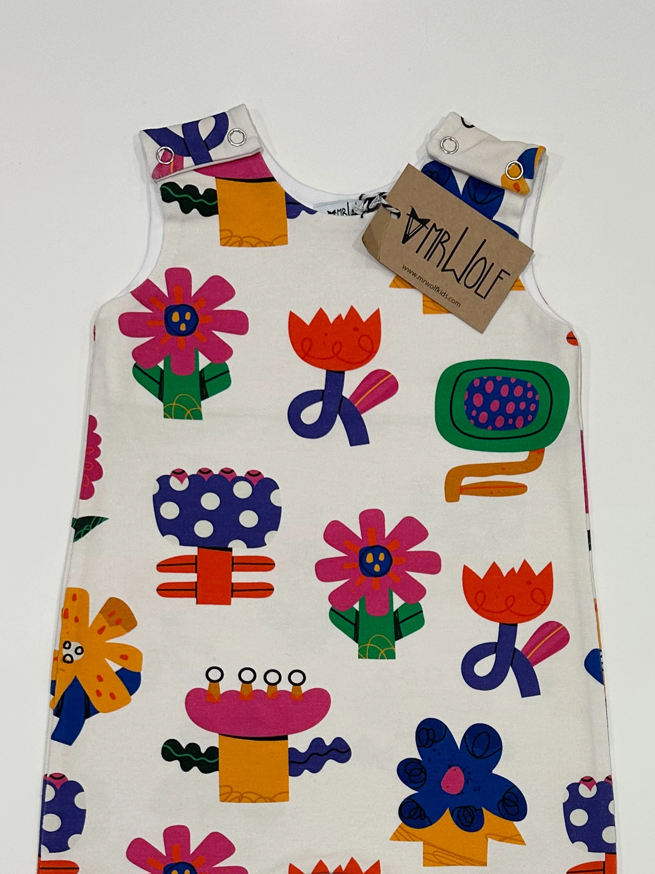 These rompers have a double cuff at the hem so can be turned up to fit little legs and then rolled back down as your child grows, this allows you to get more wear out of the romper, as we know children grow so fast! Popper fastening at shoulders and a roomy shape allows easy access for changing baby.