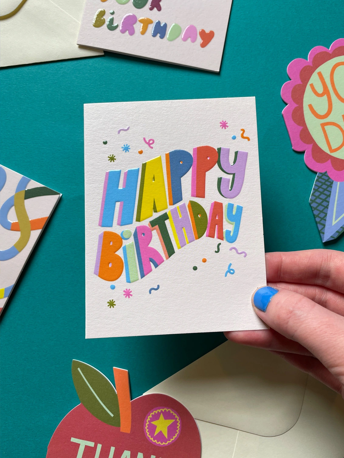 Colourful Mini Birthday Card - Rainbow 3D Type