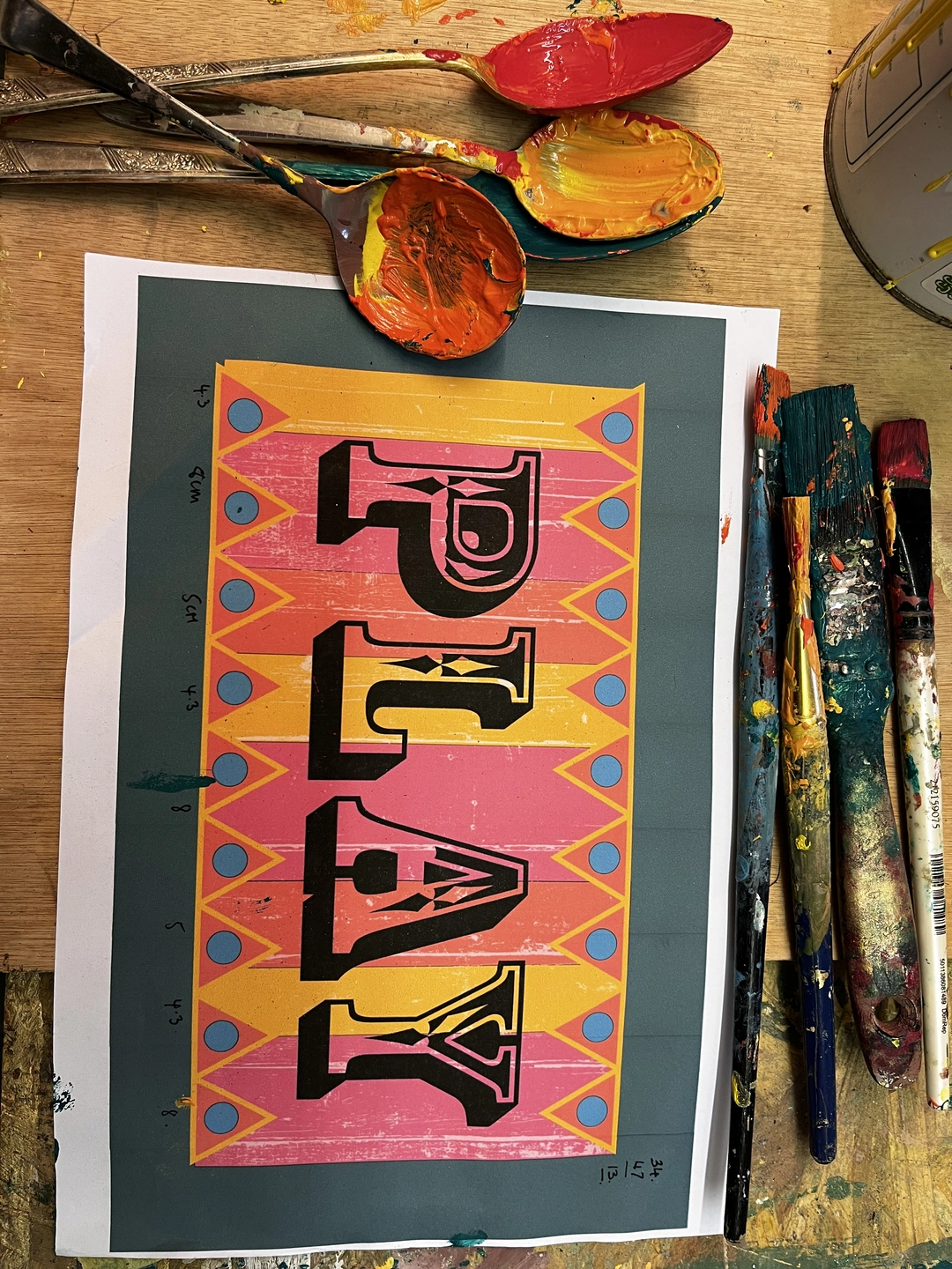 PLAY is for everyone — a joyful reminder to do more of what makes you happy, sparks creativity and fills your days with fun. Perfect for your living room, studio, playroom or office, this playful piece will brighten any space and lift your mood every time you see it.