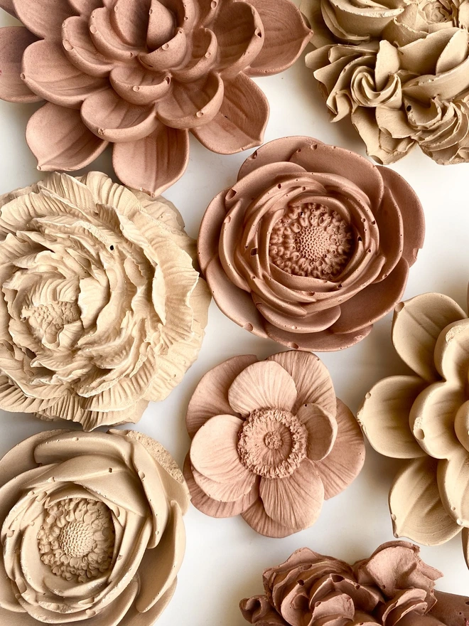 Everything is hand made to order and hand pigmented. Due to this, there will be slight variations in colour. It is advised that if ordering multiple items then these be ordered together. This will ensure flowers are created from the same pigmented batch.