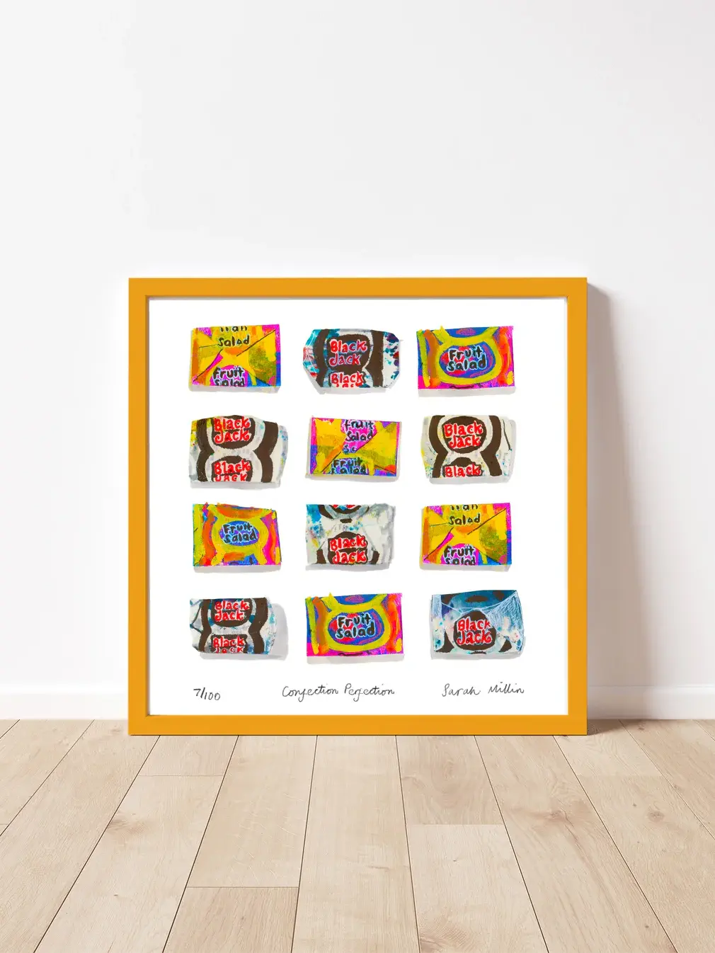 Aniseed and a black tongue, or the taste of the 70's exotic fruit in sweet form? choices, choices. Black Jacks and Fruit Salads. A custom product produced from hand created mixed-media artwork.