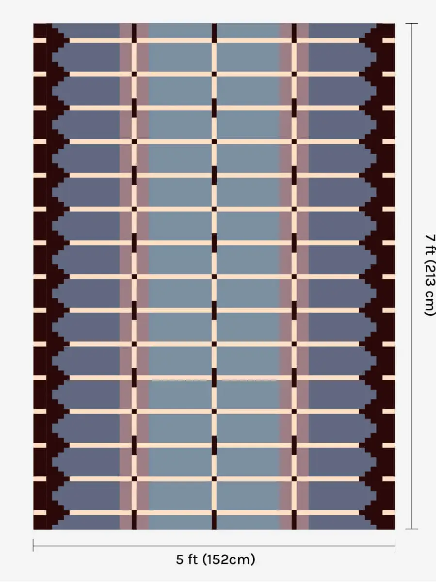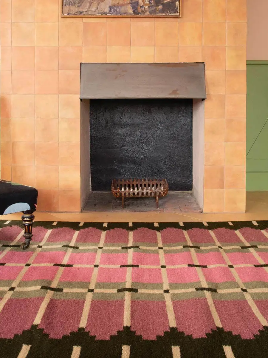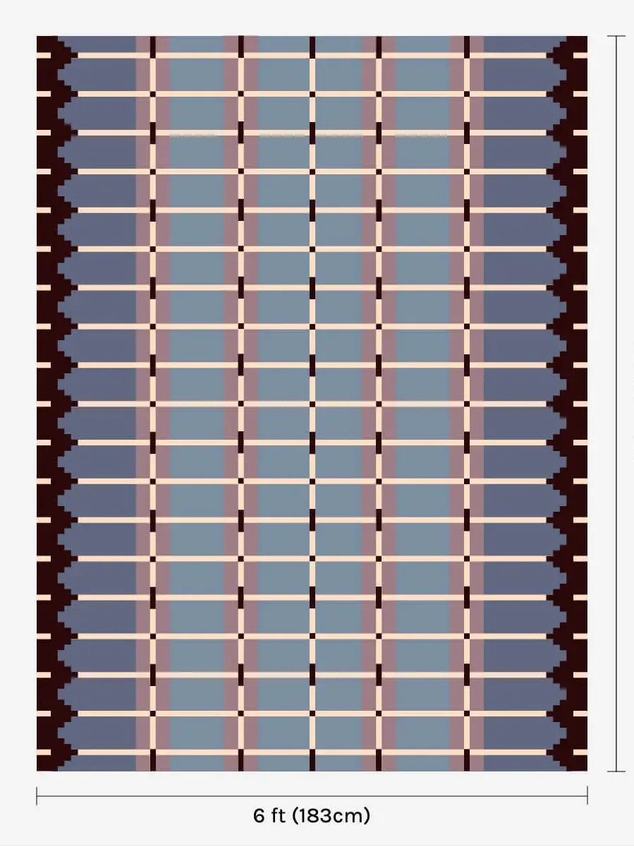 The Corbie Flatweave Rug reimagines Flemish architecture in textile form, echoing stepped gables and grid windows in a contemporary flatweave design.
