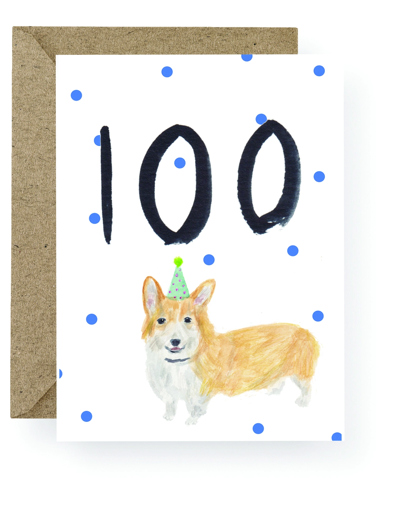 Mark the occasion with one of these beautiful illustrated number cards. The One Hundredth Birthday Card features a hand painted Corgi wearing a party hat.