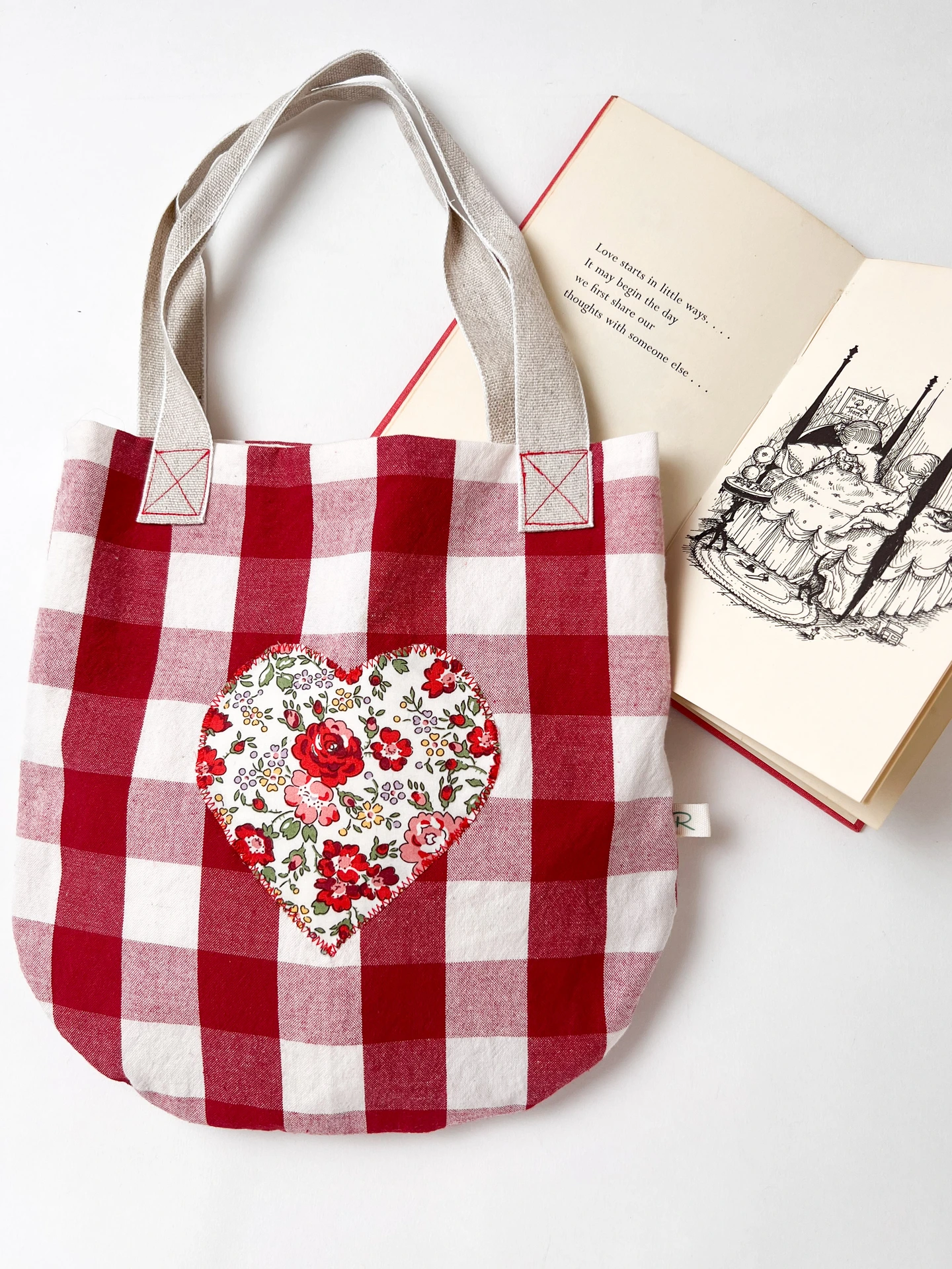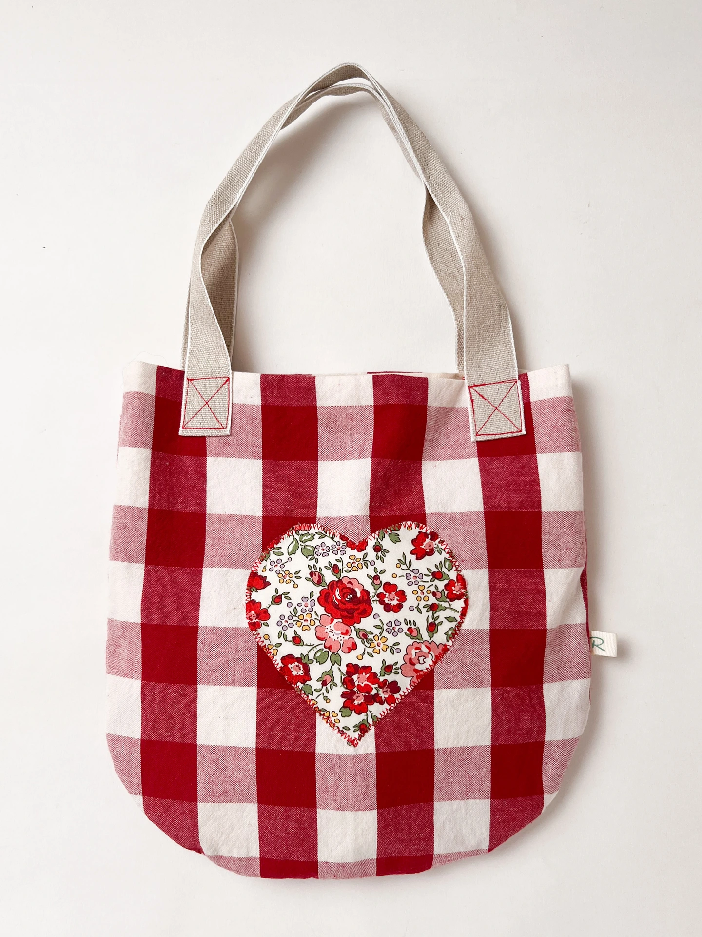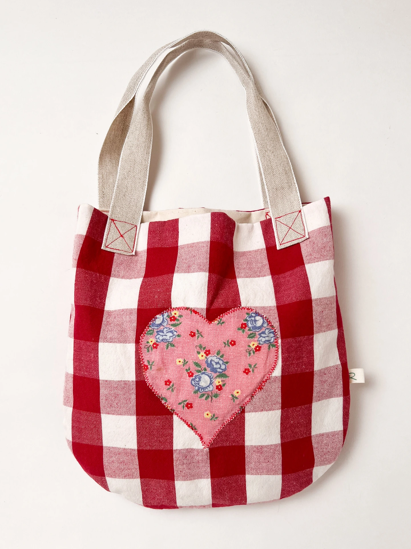 Cotton Gingham Bag with Fabric Heart