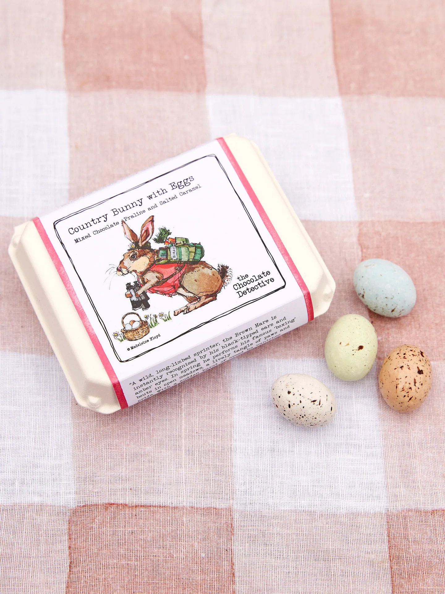 12 Chocolate Eggs, 6 filled with a fine hazelnut praline and 6 with a subtle salted caramel. A layer of milk and dark chocolate is filled with caramel or praline and then wrapped in a fine sugar shell and life-like speckles. Please note that colour combinations may vary seasonally.