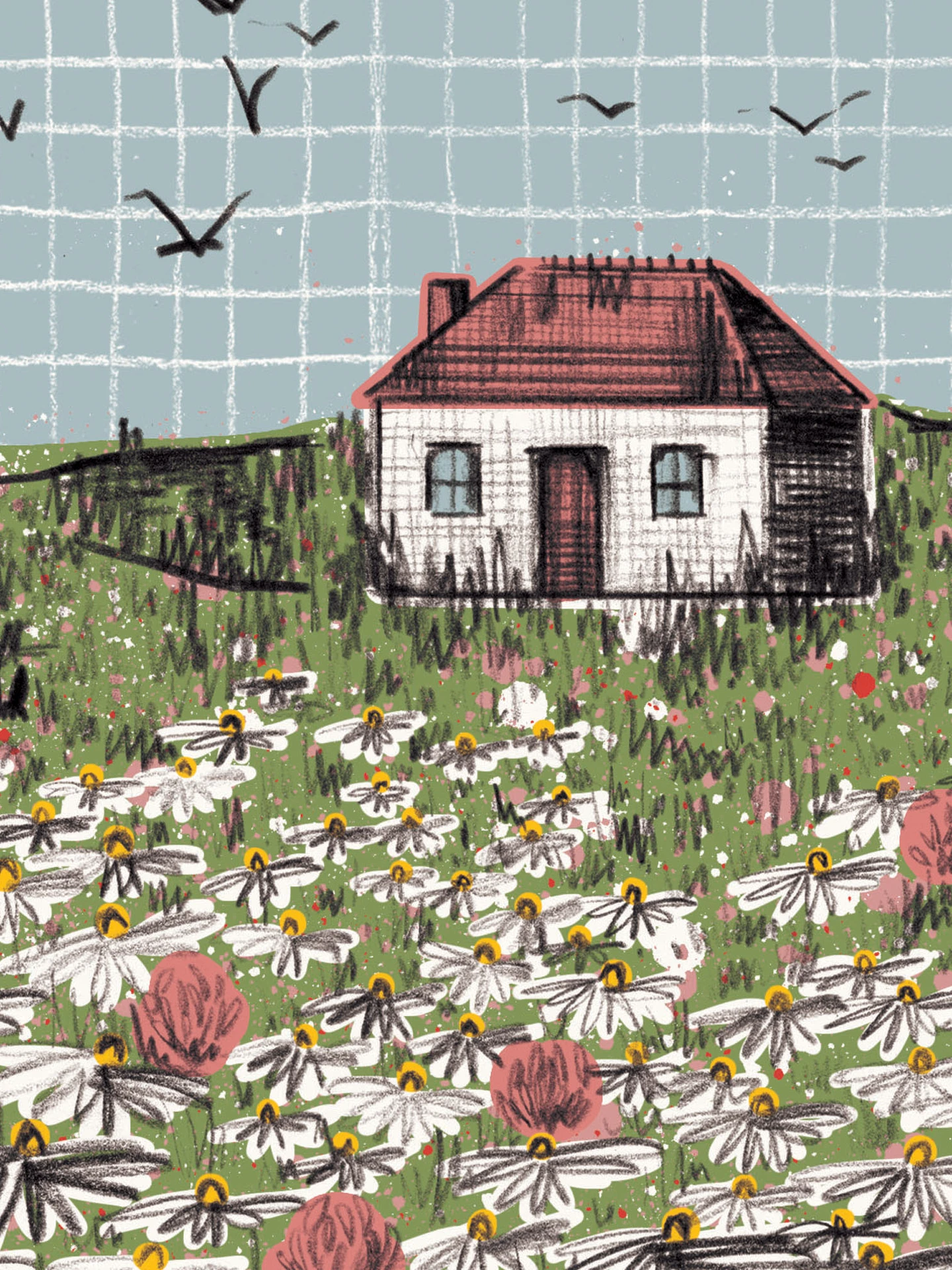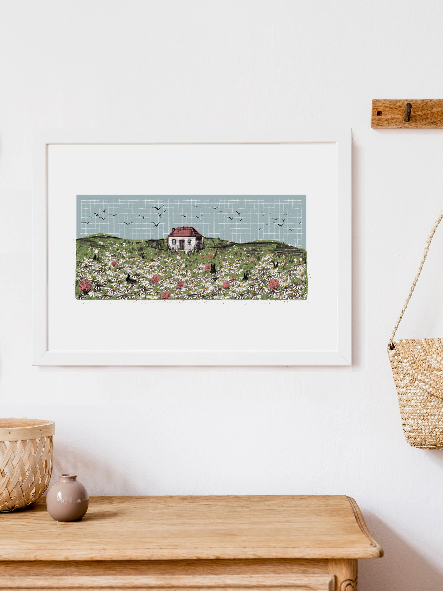 A tiny white cottage in a wildflower meadow full of wild rabbits - somewhere I'd like to live!