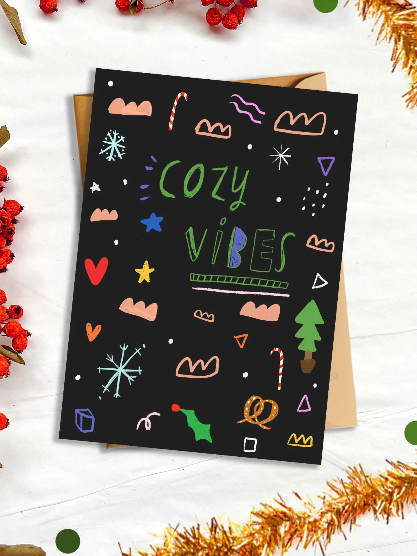 Standard A6 size greeting card designed by Nicola Rowlands and printed in the UK. Proudly printed on recycled card. Will be mailed to you in a hardback envelope and will include a brown recycled paper envelope. Card is blank inside for your own message. Cello bags made from cornstarch and are compostable and biodegradable.
