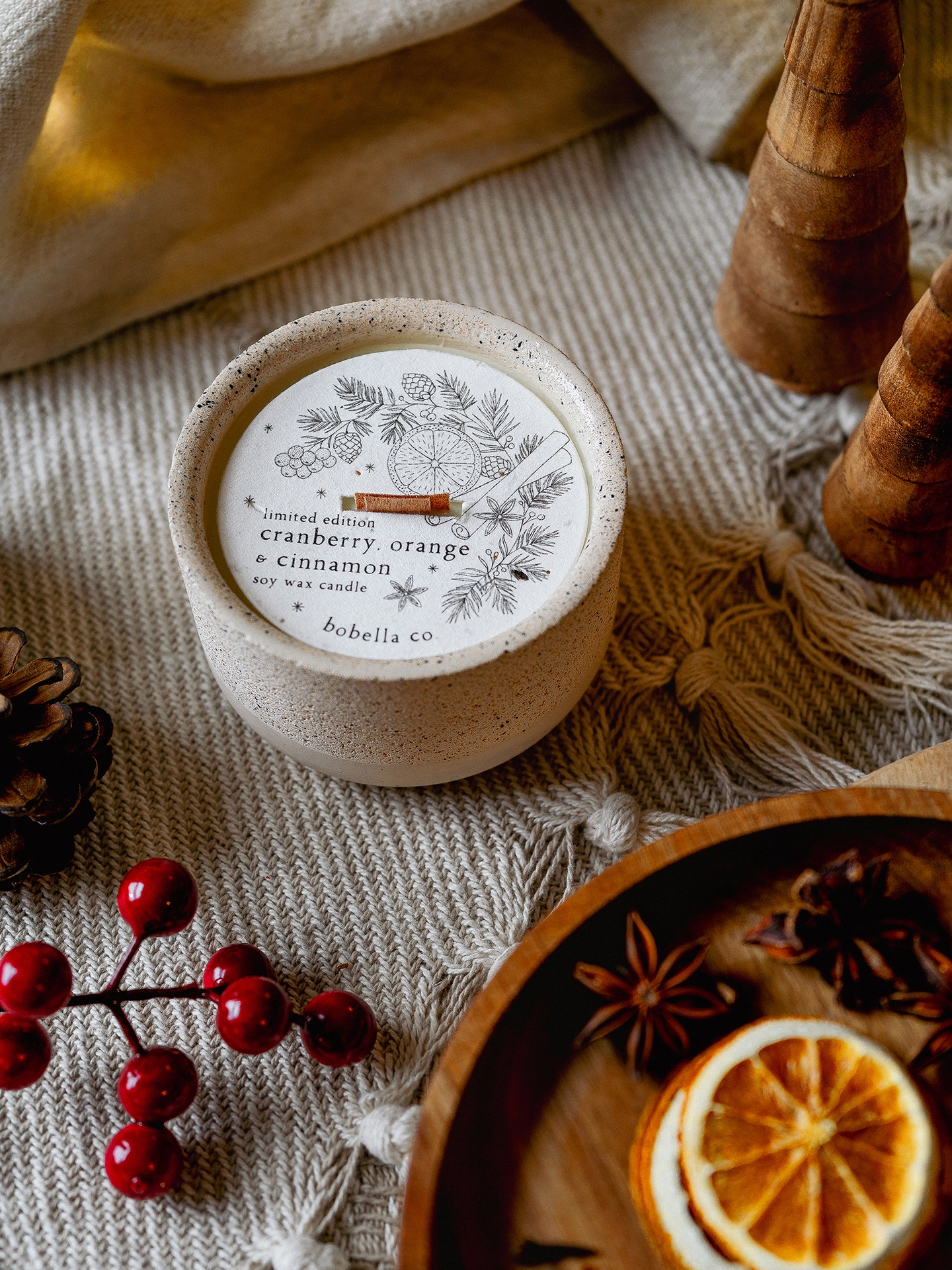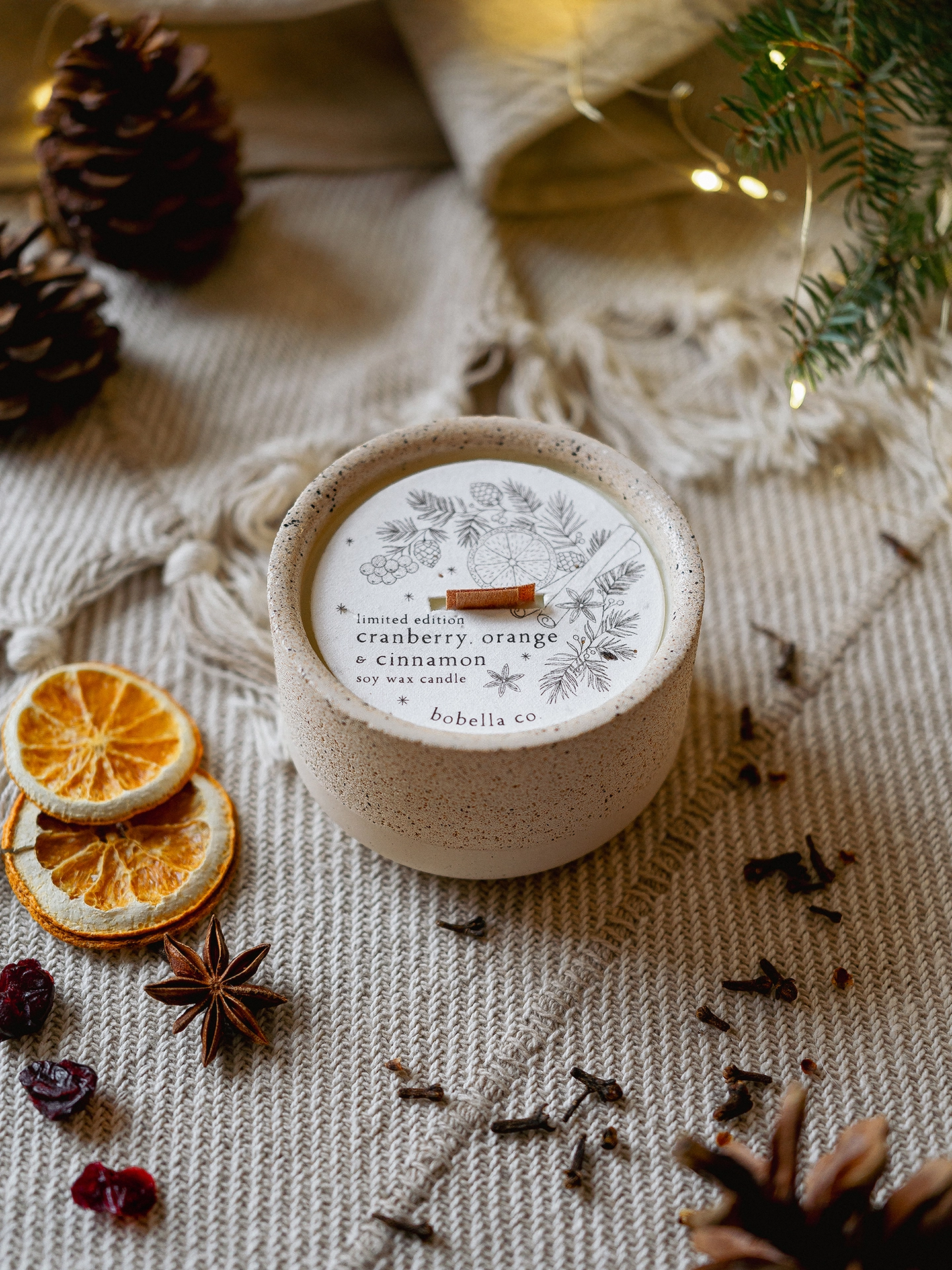 Immerse yourself in the comforting aroma of cranberry, orange, and cinnamon — a scent that captures the spirit of Christmas morning and cosy winter nights by the fire.