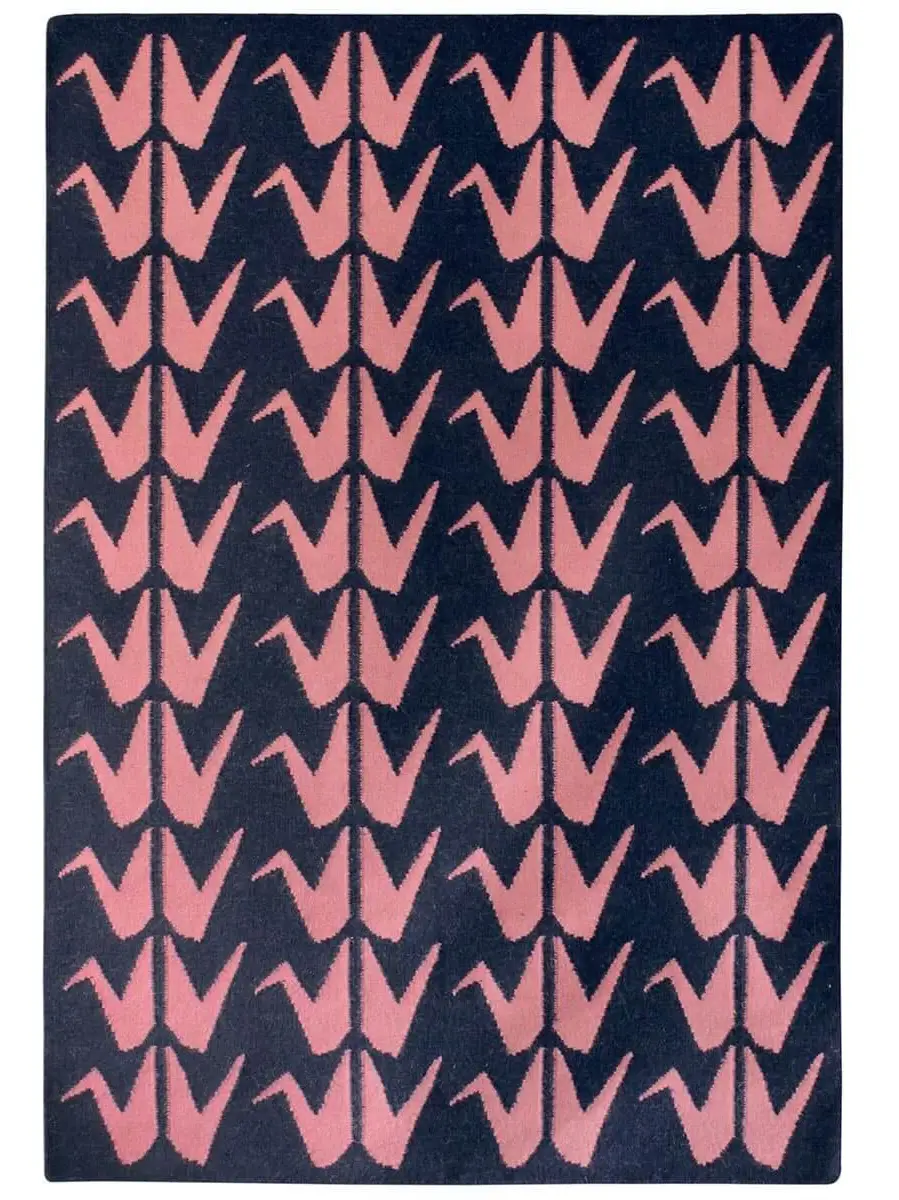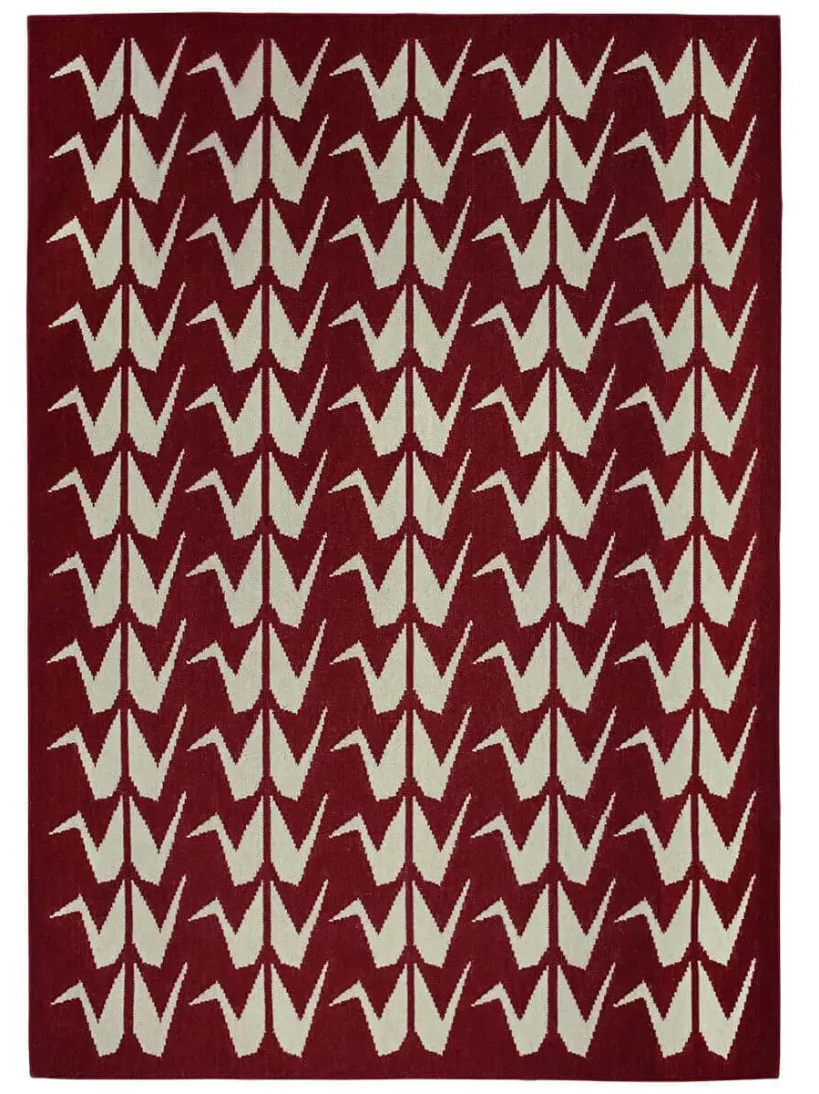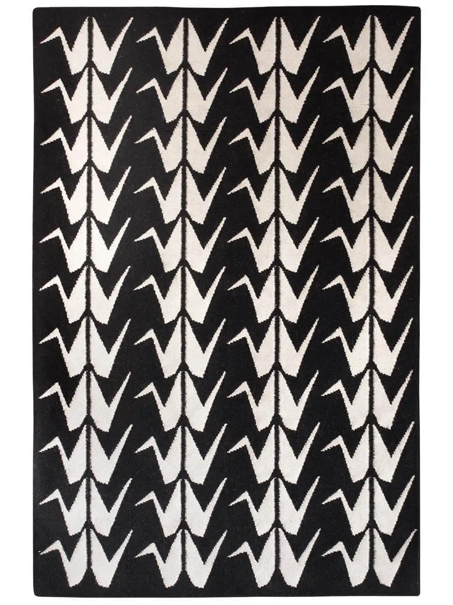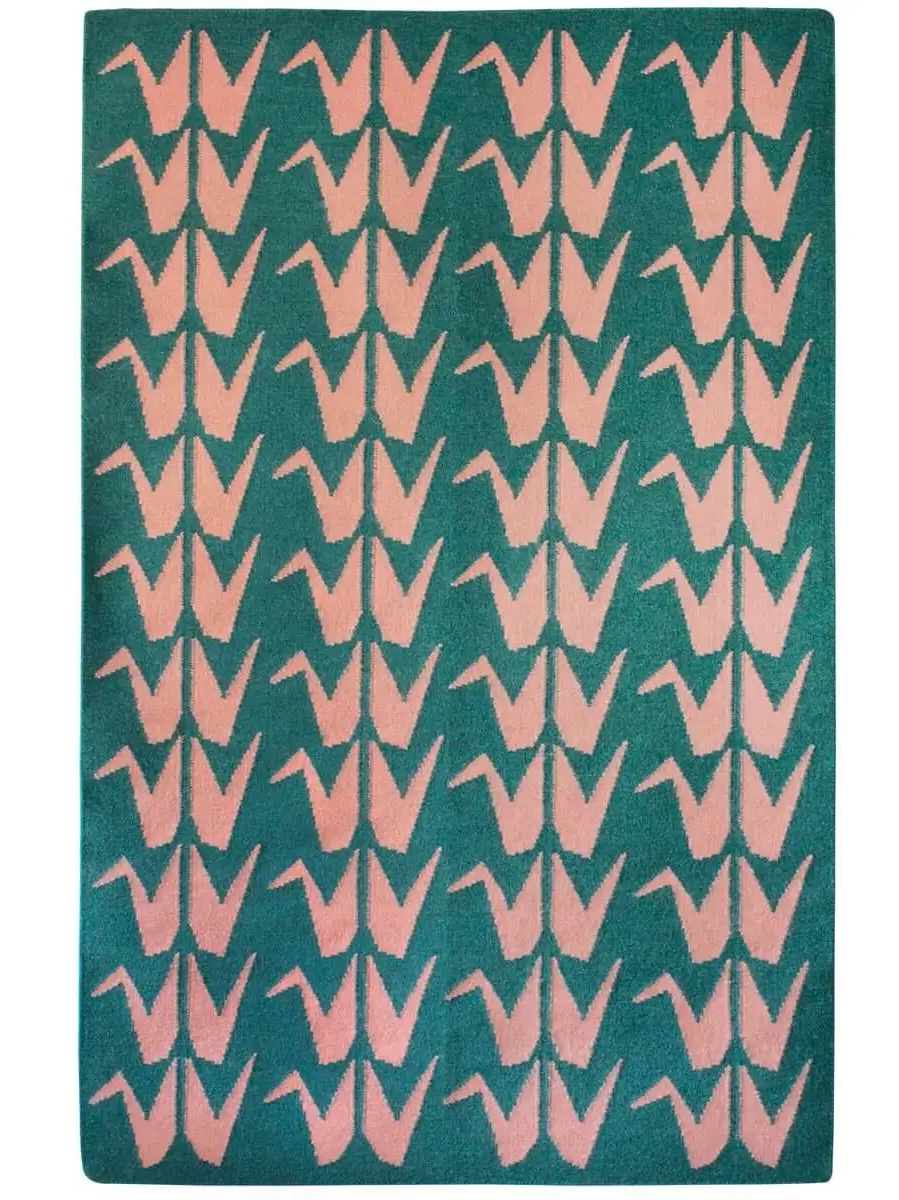 Crafted by skilled artisans in India, this striking rug features elegant handwoven origami cranes.