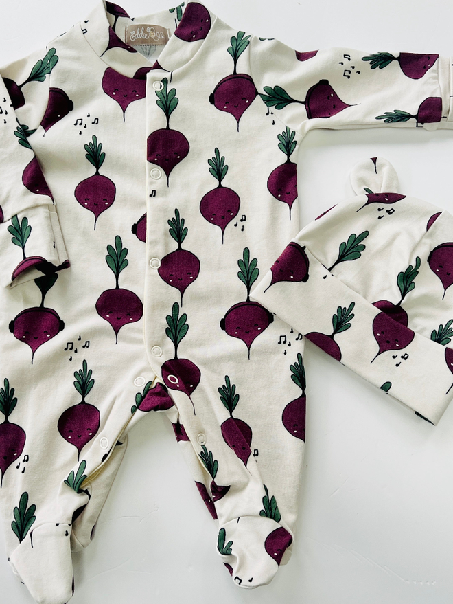 Cream 'Beetroot' Organic Cotton Baby Sleep suit