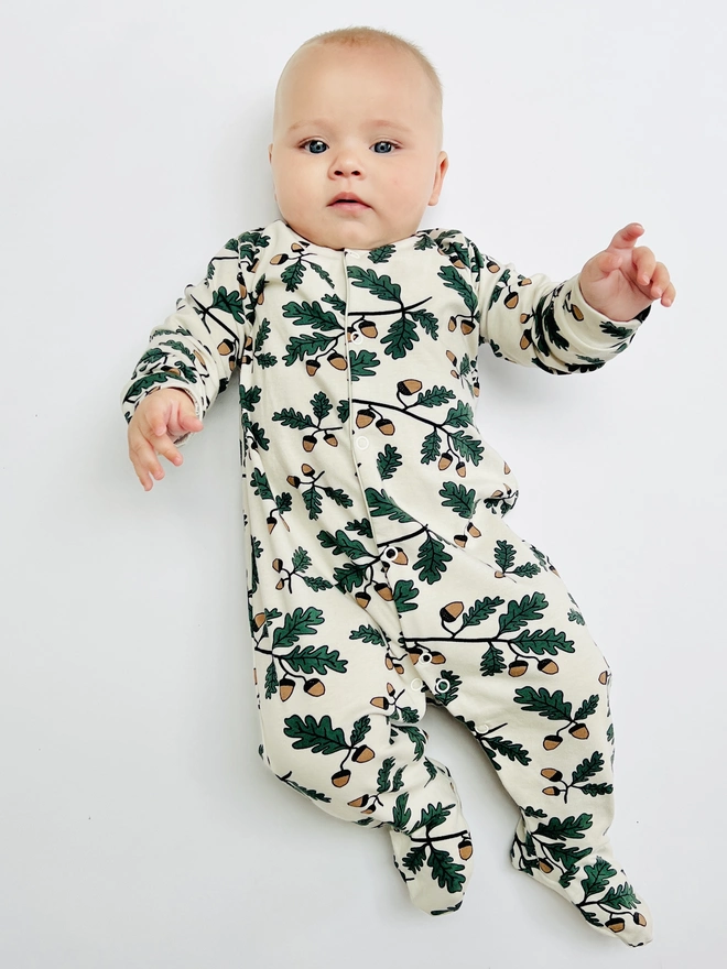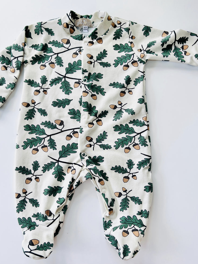 Cream 'Little Acorns' Organic Cotton Baby Sleep suit