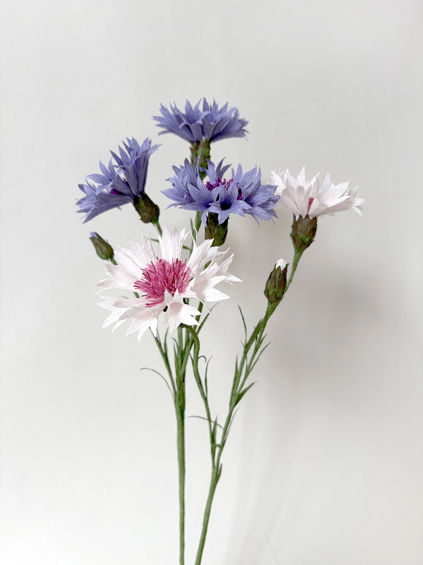 It is a kit for you to make a Crepe Paper Cornflower designed by us, you will able to make 5 flowers, 3 buds and a few Green Leaves with the provided materials. If you don't understand the guidelines, we also have a youtube video will able to show you the whole process.