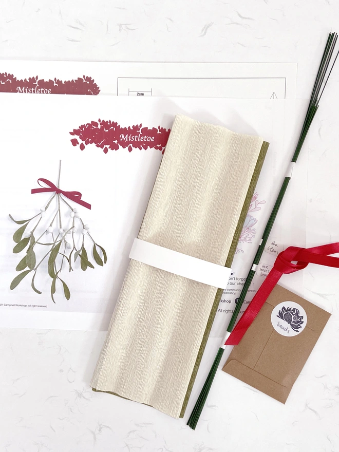 It is a kit for you to make Crepe Paper Mistletoe will able to make a branch of mistletoe with at least 20 leaves & berries with the provided materials. We have a youtube video will able to show you the whole process.