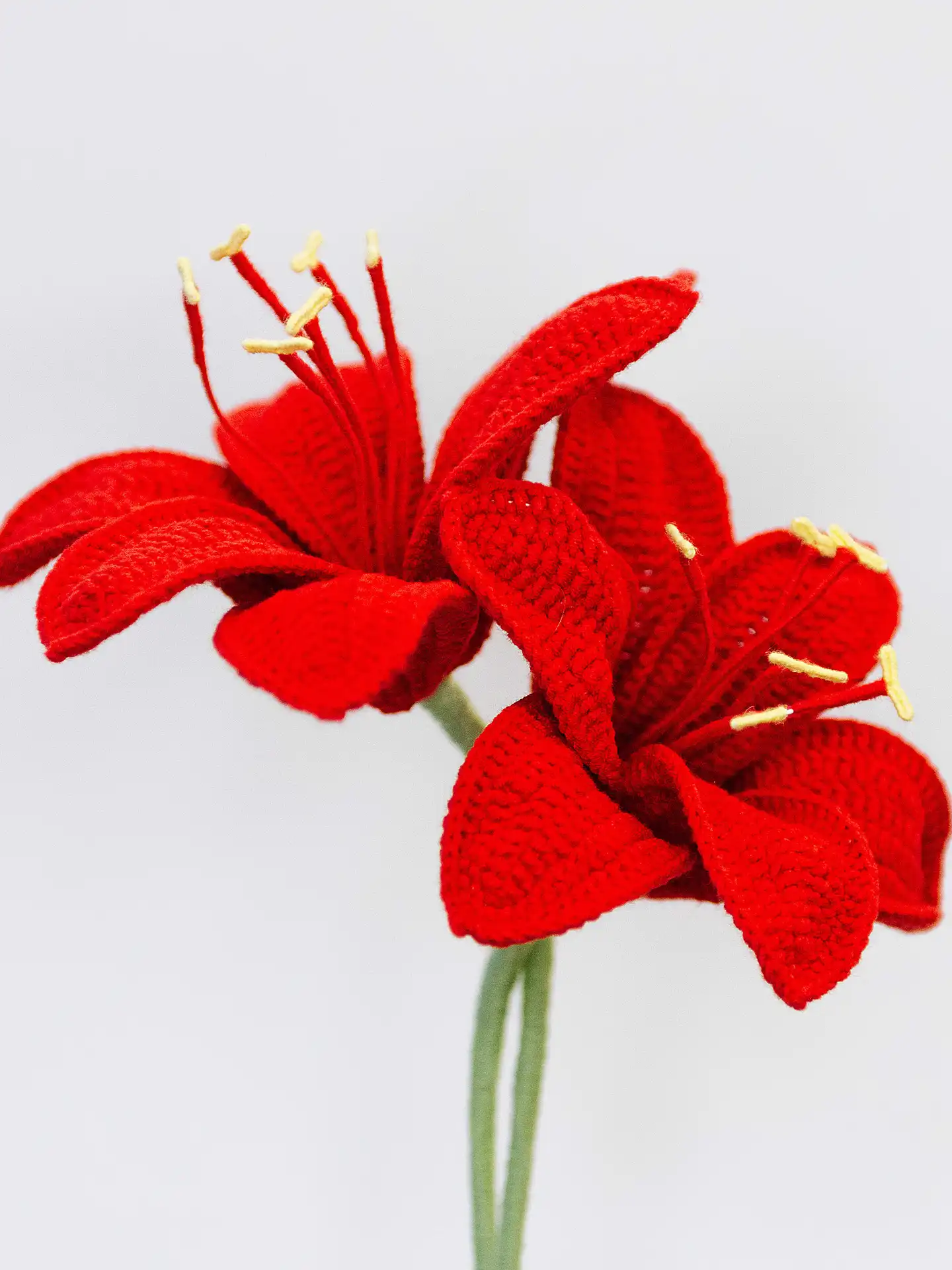 Made with care from a durable cotton-acrylic yarn blend, our Amaryllis is designed to last, offering a sustainable and timeless alternative to real flowers. Whether displayed in a vase, given as a thoughtful gift, or used as part of a larger arrangement, this piece radiates positivity and charm.