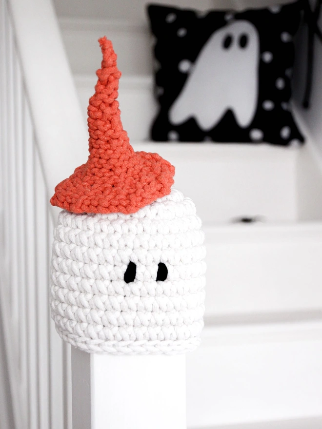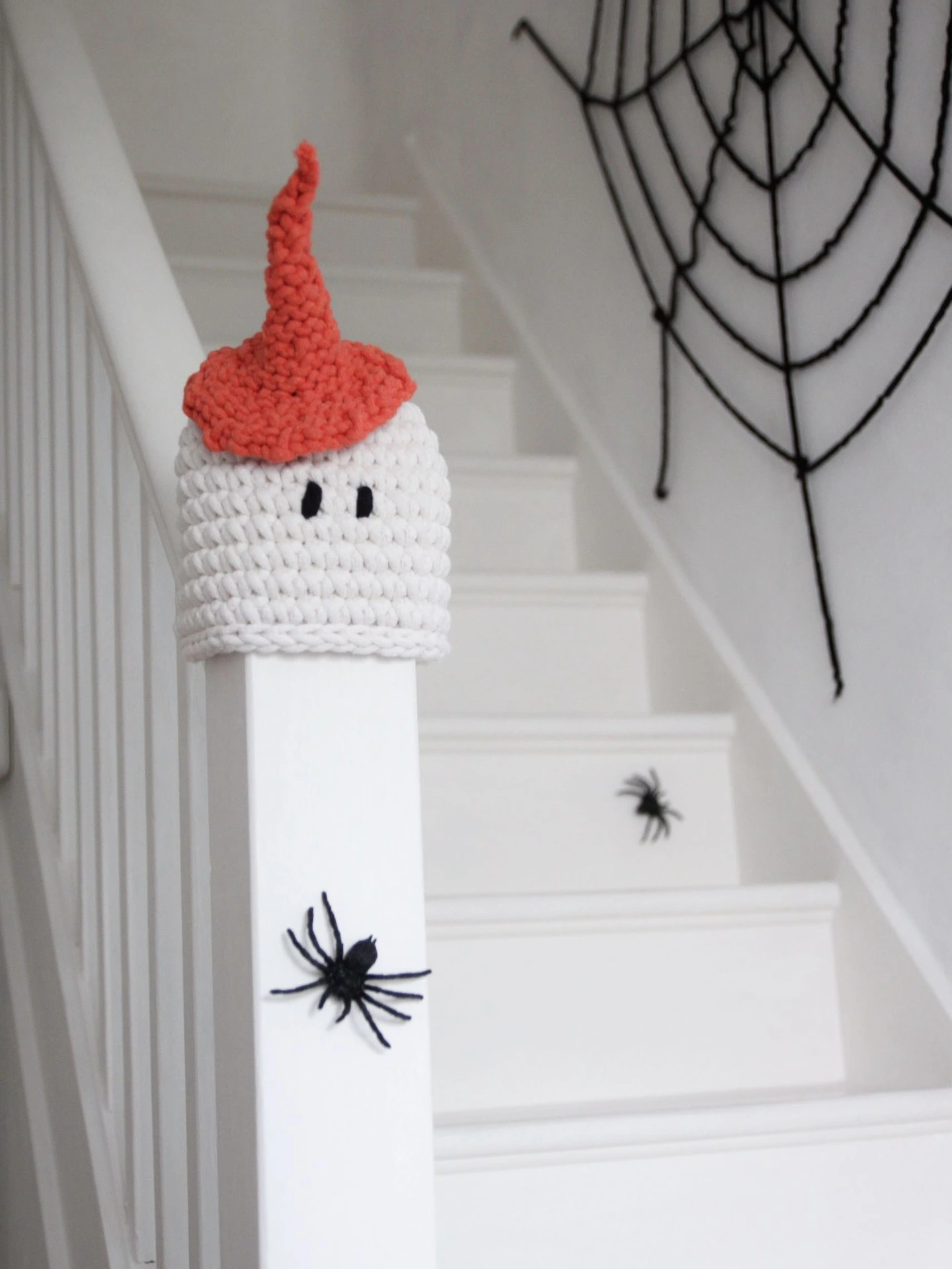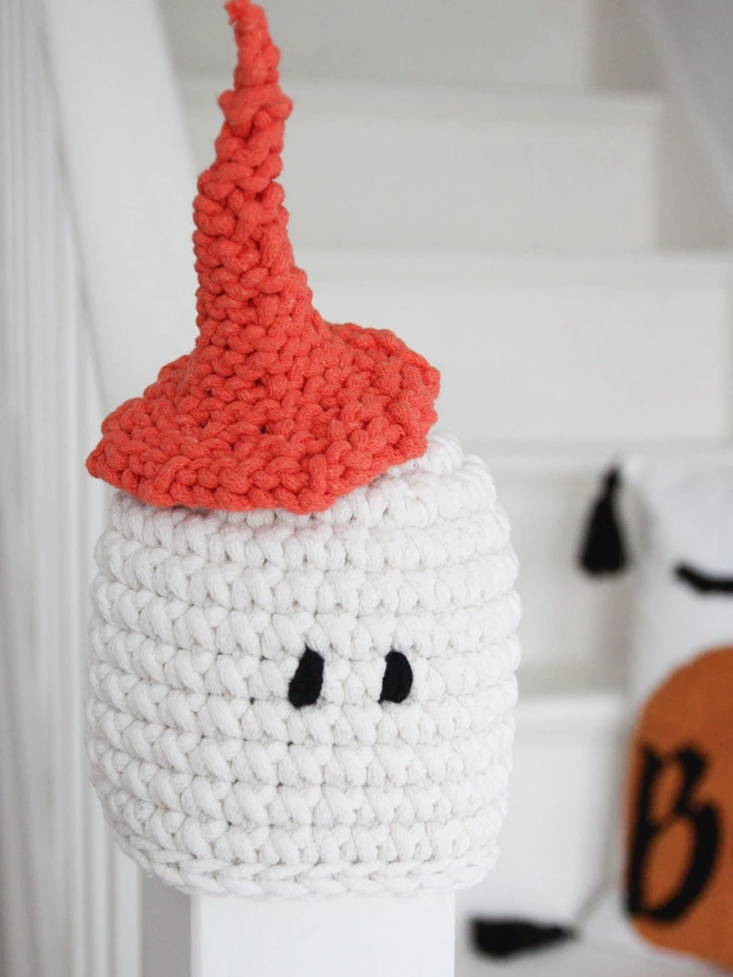 Crochet Ghost Banister Topper - Handmade Halloween Decoration
