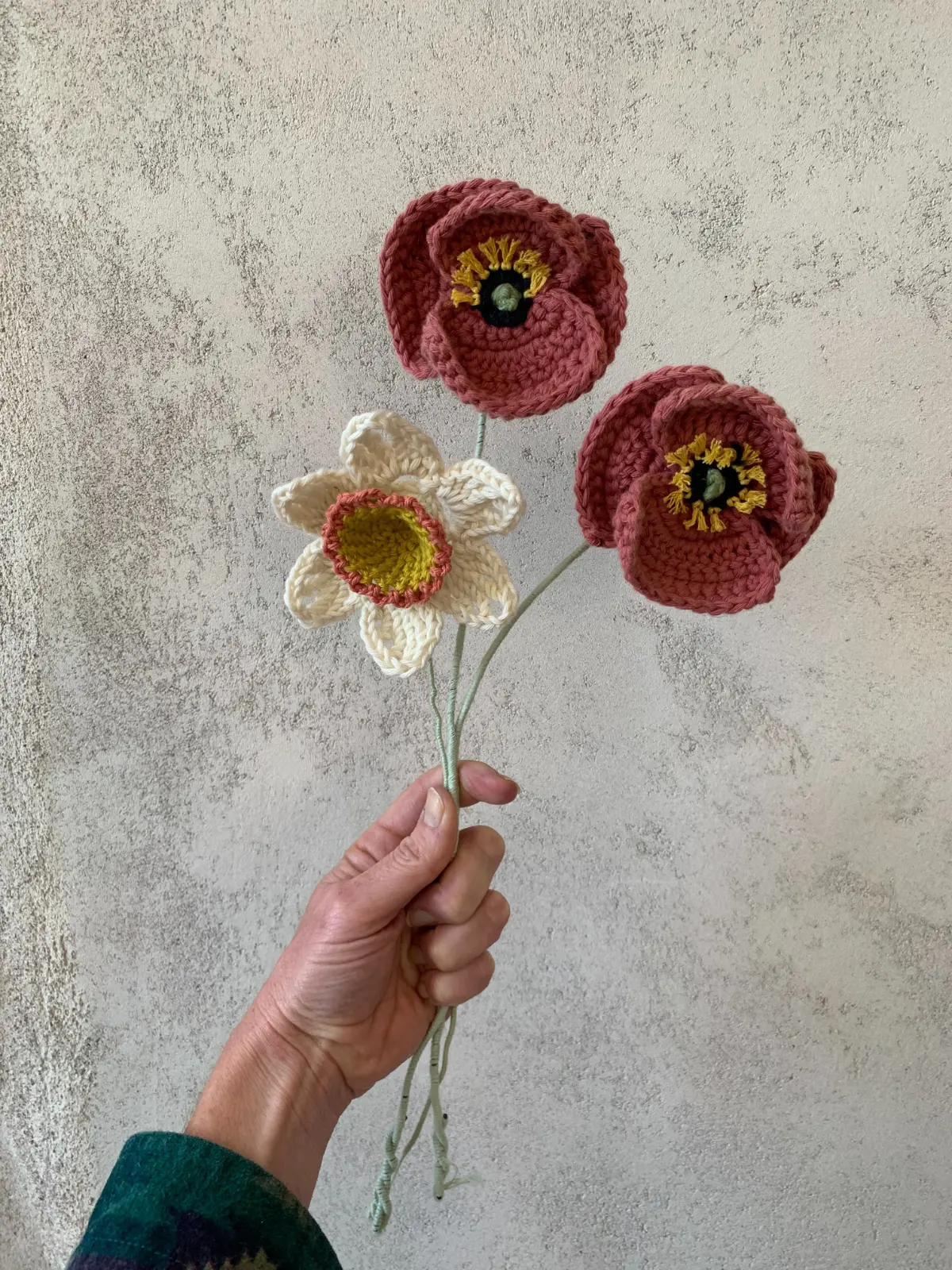 Inside your kit you’ll find everything you need, cotton yarn, a crochet hook, wiring for the flower stems, and a detailed pattern accompanied by video tutorials. The instructions and video tutorials have versions for both left and right handed crafters.