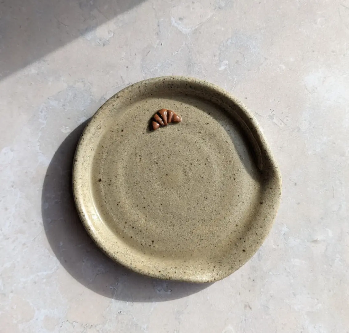 This listing is for a single, handmade ceramic teaspoon rest with a mini croissant design. These are wheel-thrown spoon rests made from speckled, biscuit-coloured stoneware clay and with a hand-painted, 3D mini croissant. They are truly unique and perfect for any croissant lover!