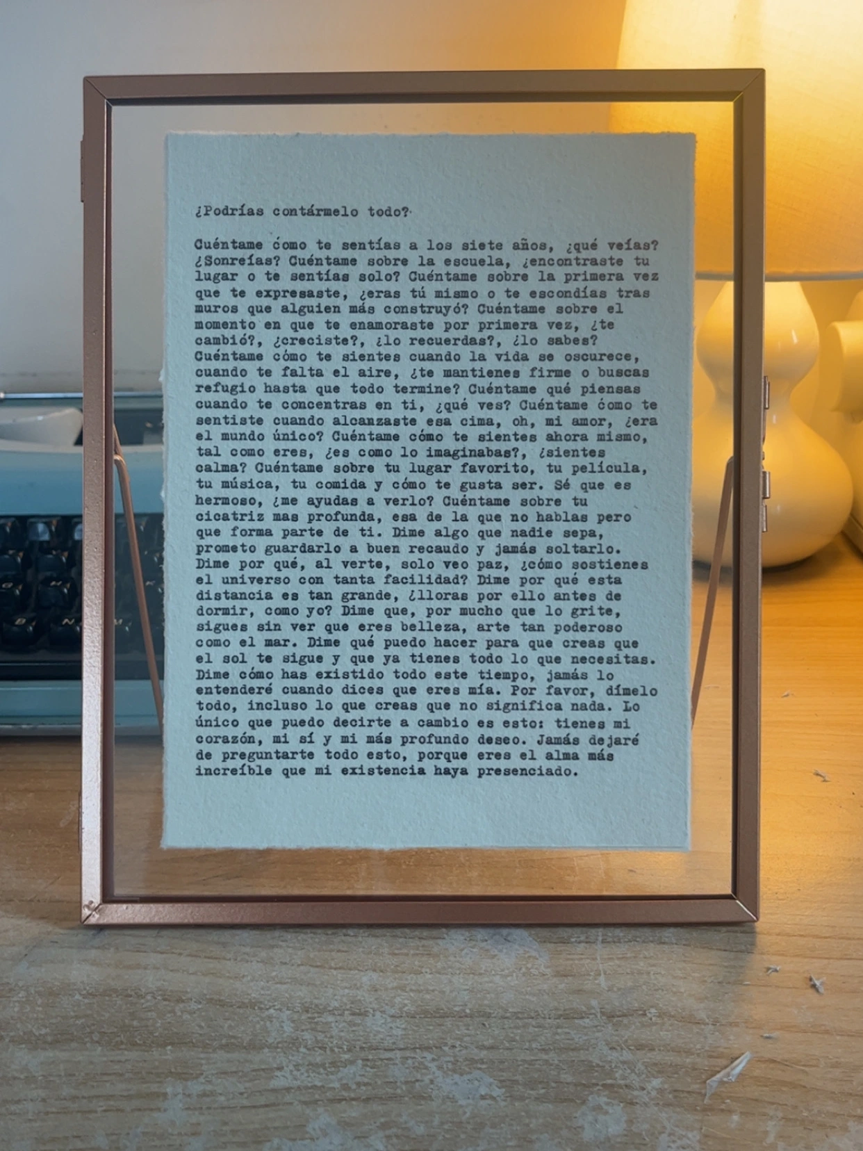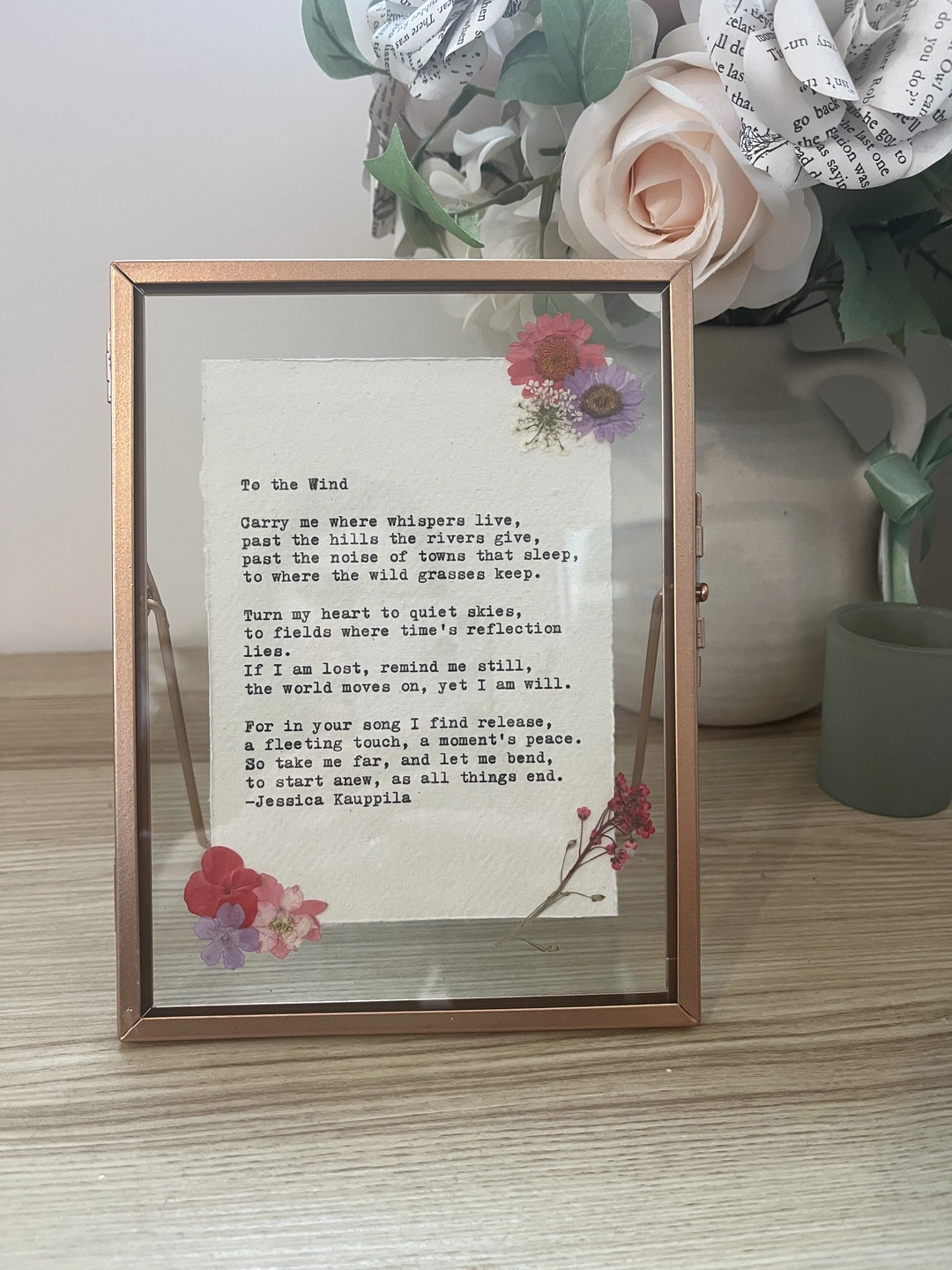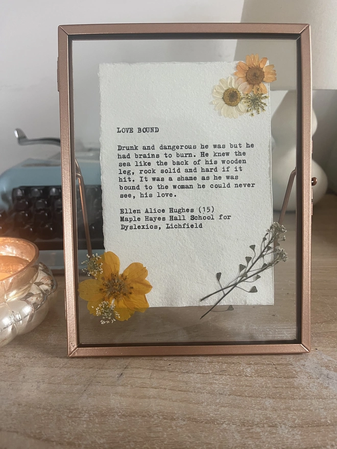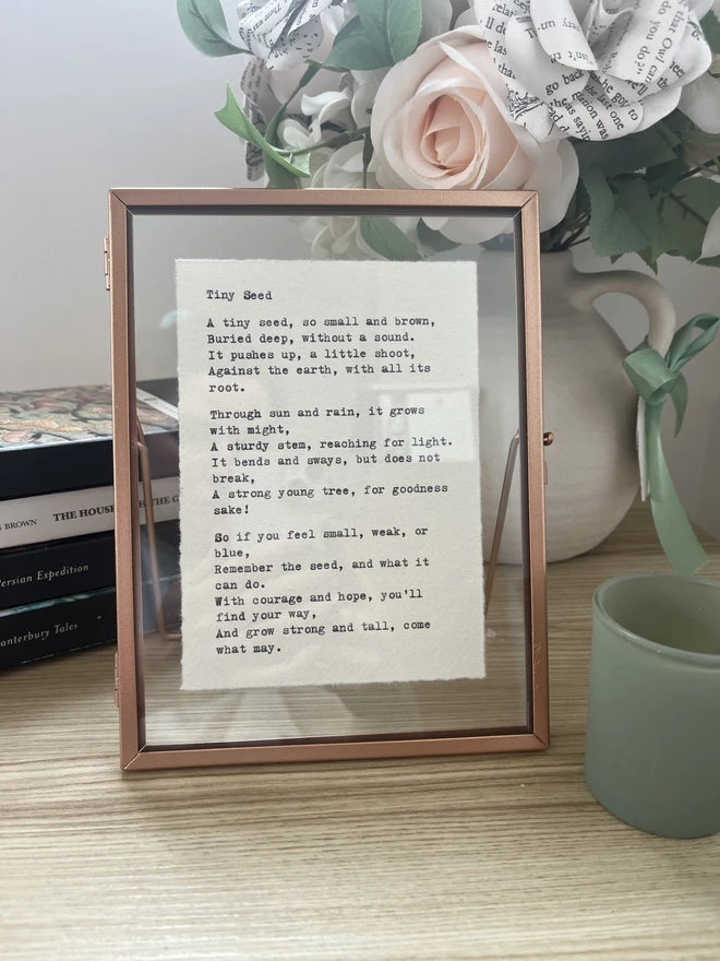 Select the option of including a beautiful rose gold floating frame to really showcase your words.