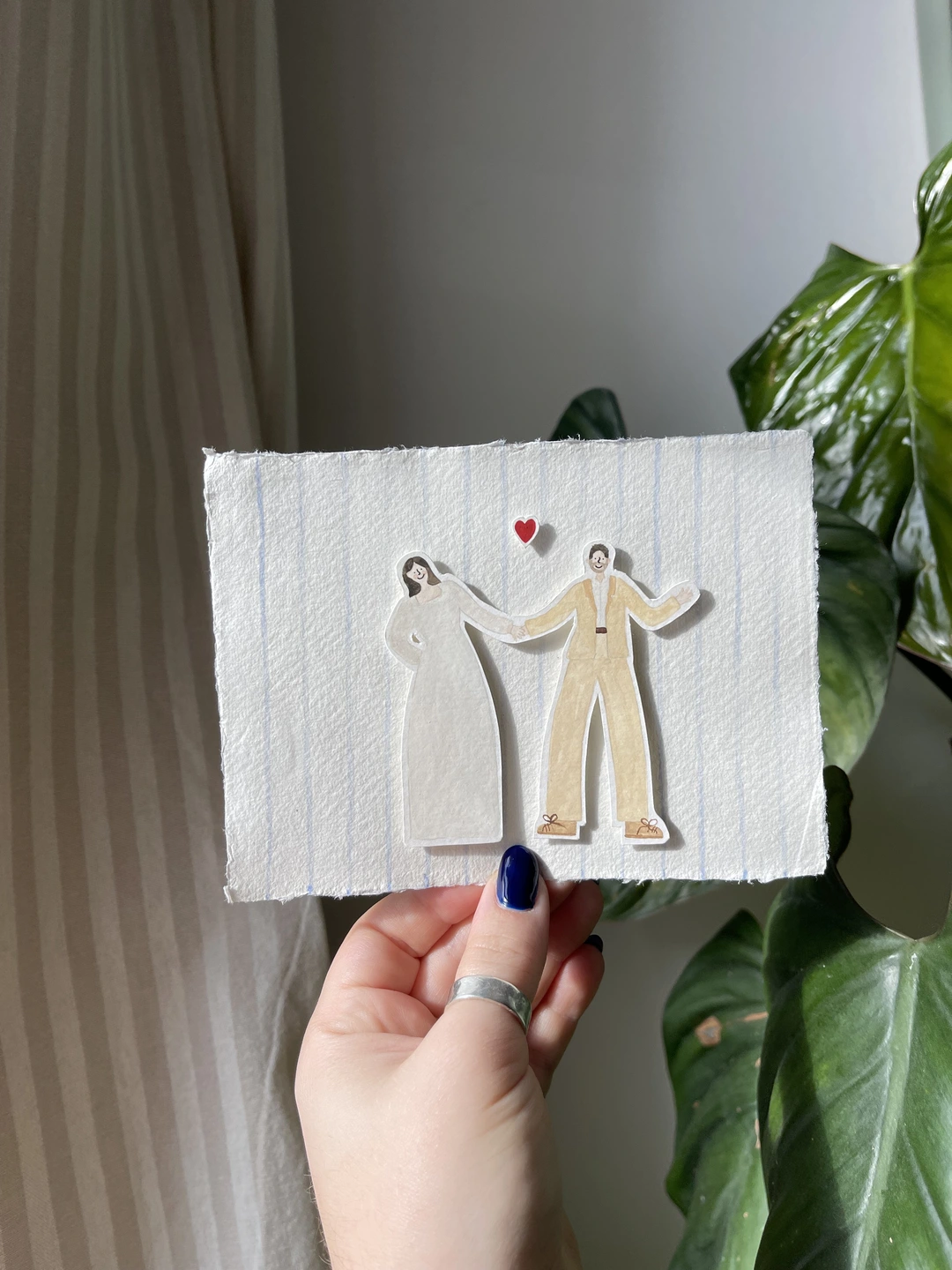 The portrait will be custom made to specifically look like you and your fave in a specific outfit for a more personal touch, whether that be a wedding dress or your fave date night outfit!