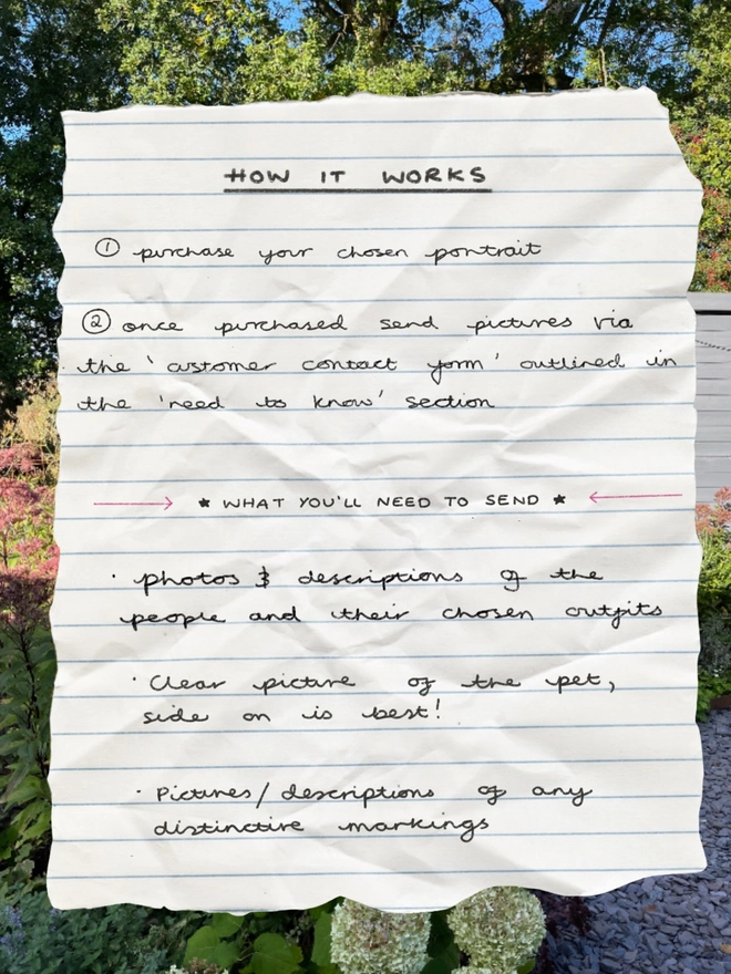 Please send photos of the person + pet after purchasing via the 'Contact Seller' option on Holly & Co