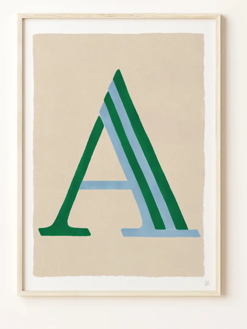 An alphabet art print is a perfect way to personalise a kids’ room or nursery, or why not celebrate a new home with initials for your living room, or bedroom! Select your colour choice and letter from the lists.