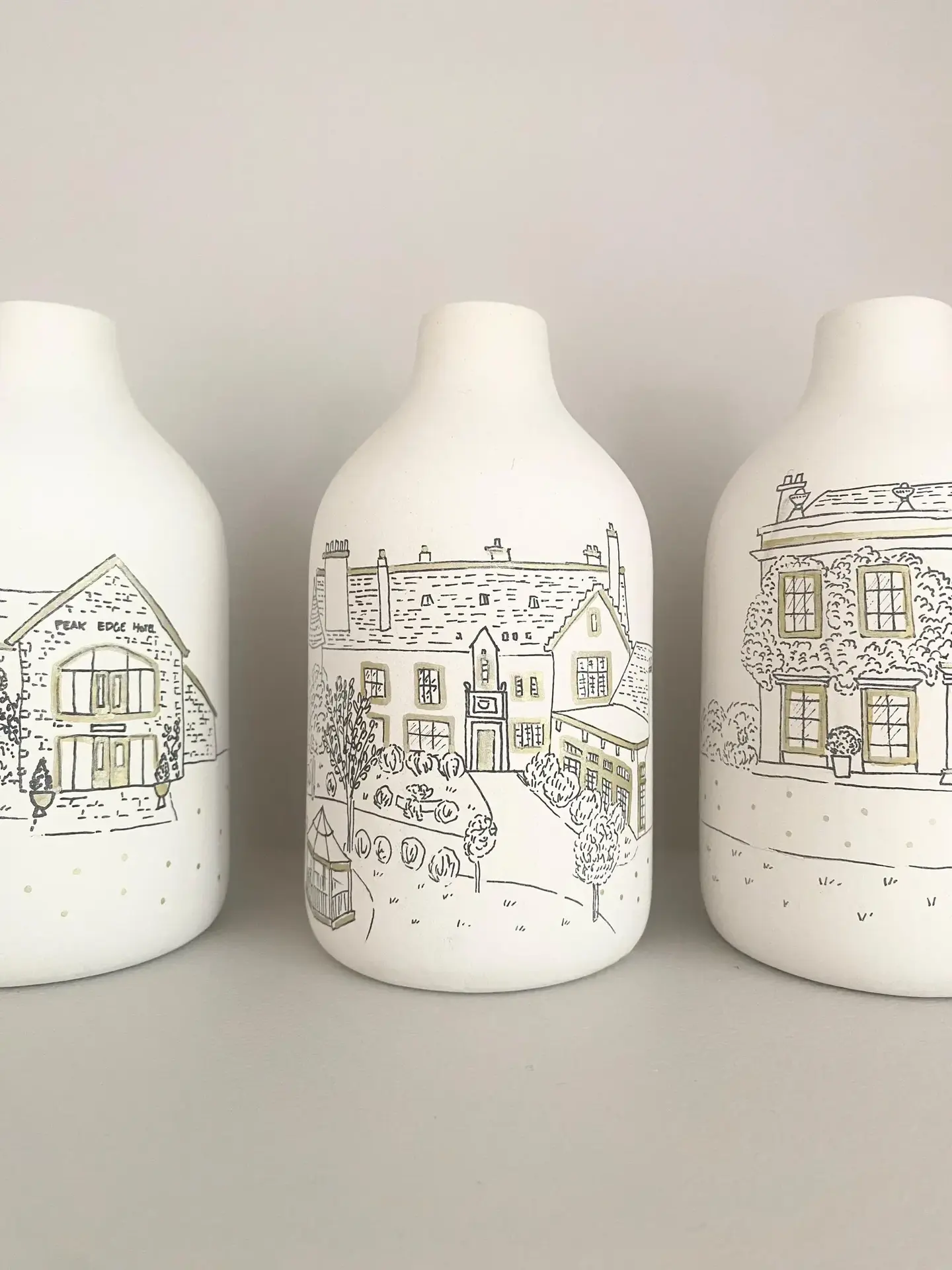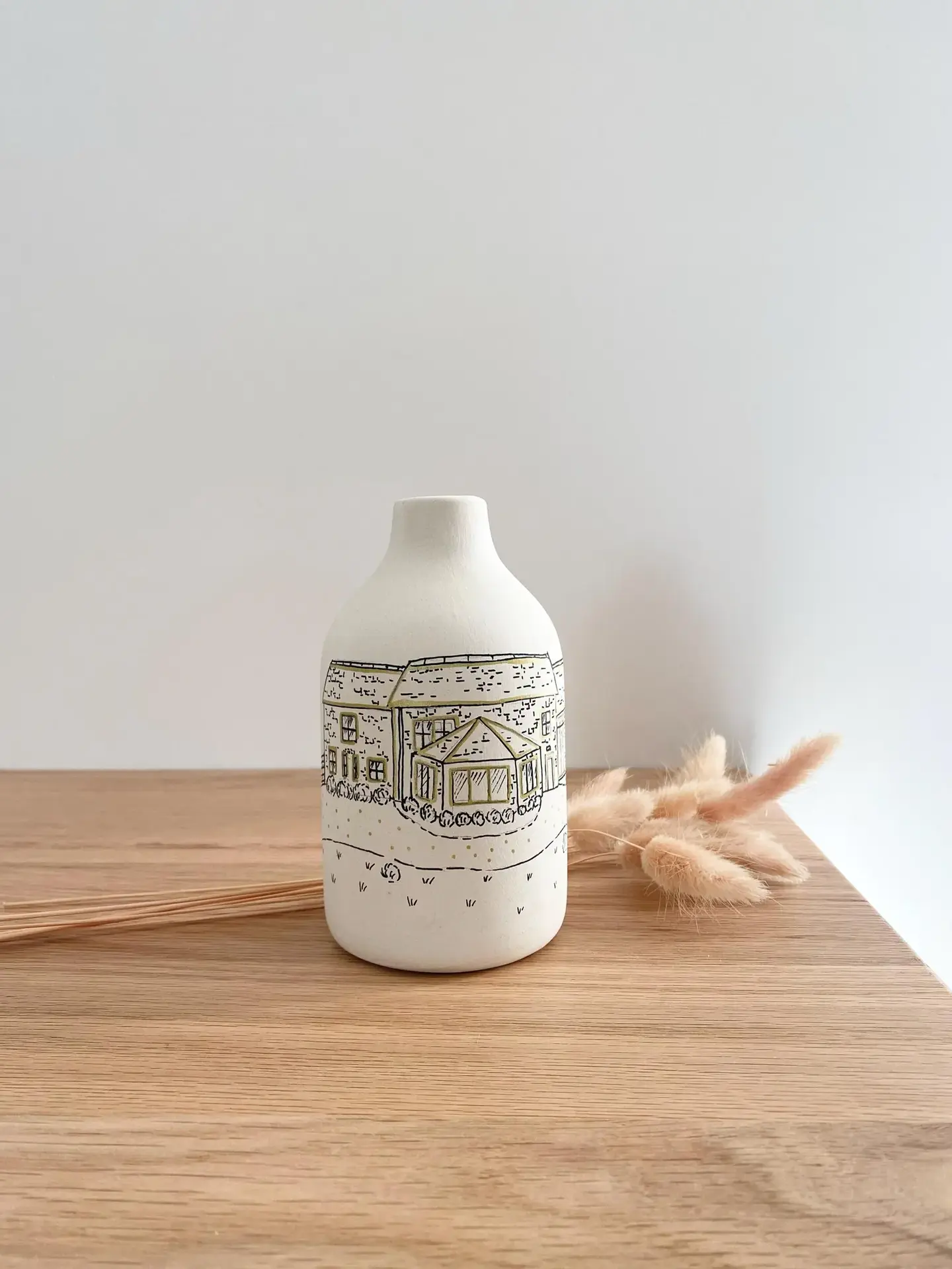 This beautiful hand drawn vase is the perfect way to remember your wedding venue for years to come! Featuring a hand drawn illustration of your wedding venue making each vase unique and one of a kind.
