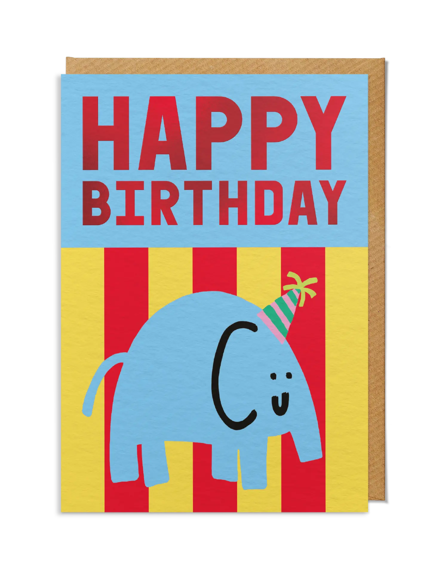 A contemporary, bold, and colourful striped design featuring a charismatic giraffe in a party hat. With luxurious red hot foil ‘Happy Birthday’ typography, this playful unisex card brings good vibes and a smile — a joyful celebration of our wildlife friends in style.