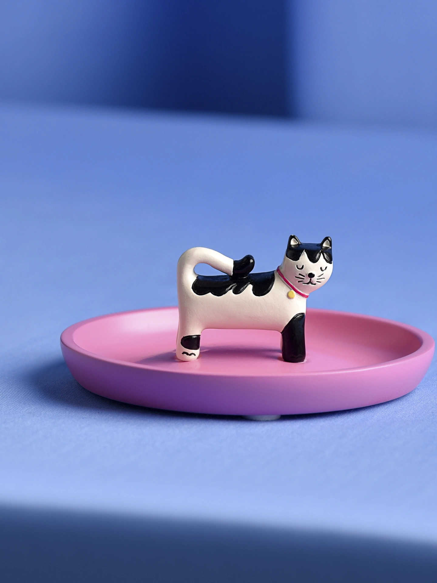 Made from polyresin, the bold blue colour of the dish contrasts beautifully with the black and white embellishment.
