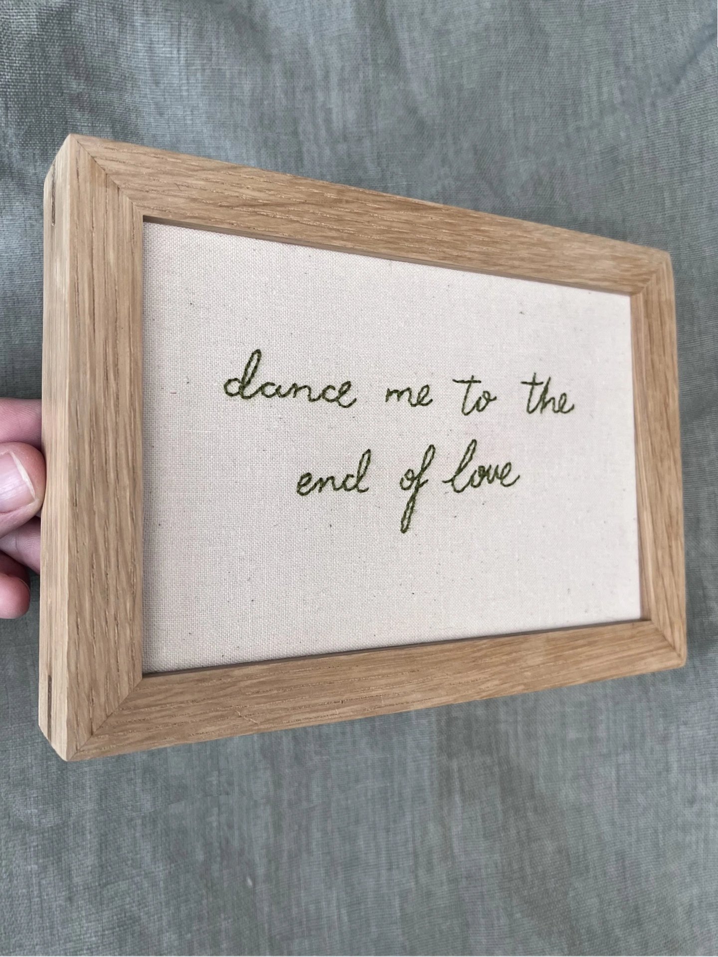 Wording taken from Leonard Cohen’s 1984 love song ‘Dance Me to the End of Love’.