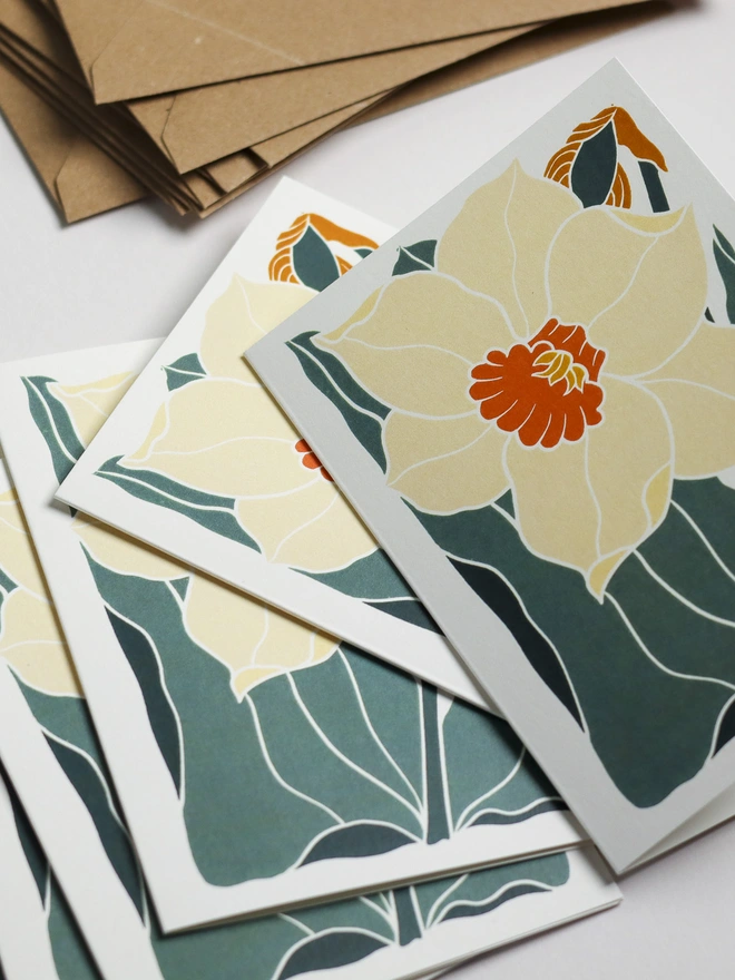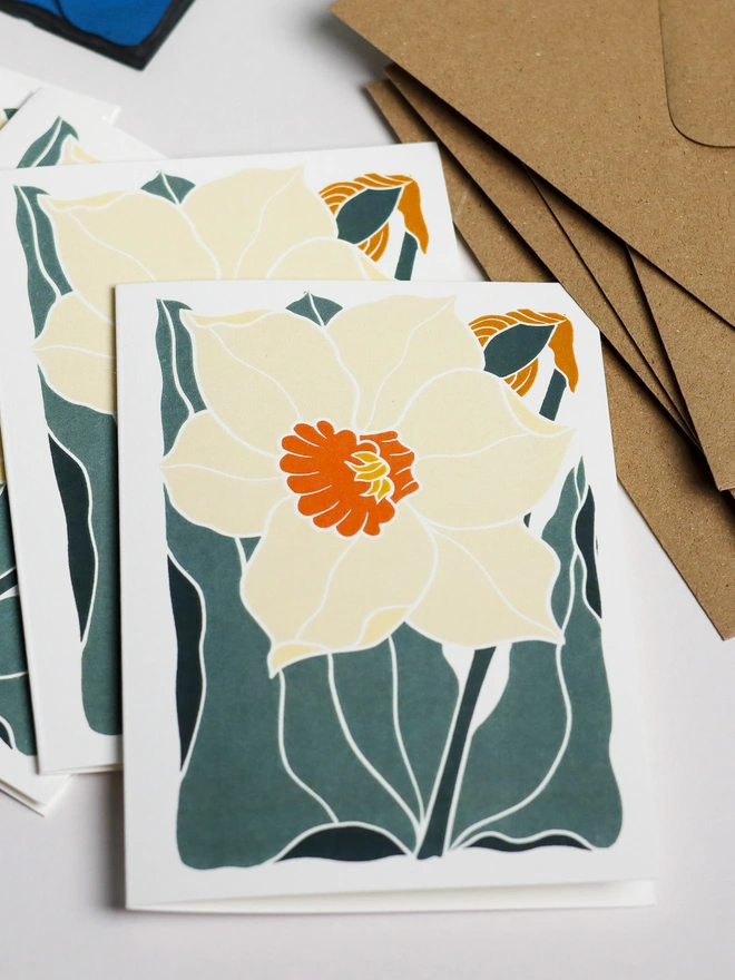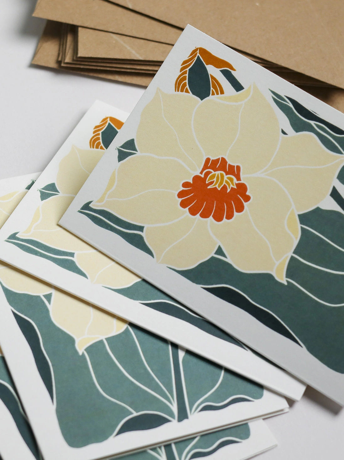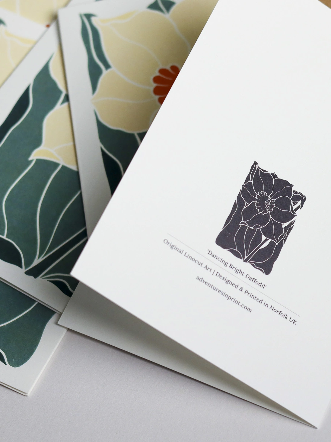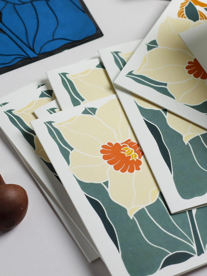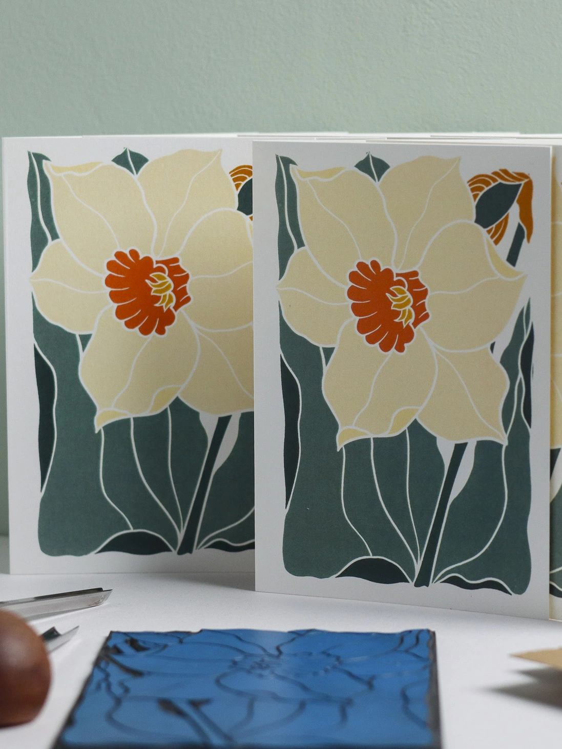 These botanical notecards are perfect for heartfelt correspondence, thank you notes, or elegant invitations. Each design begins as a hand-carved linocut print from my Norfolk studio - traditional relief printmaking meeting contemporary colour, created with real carving tools, real linoleum, and real patience.