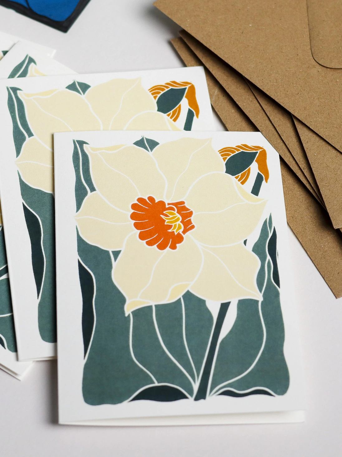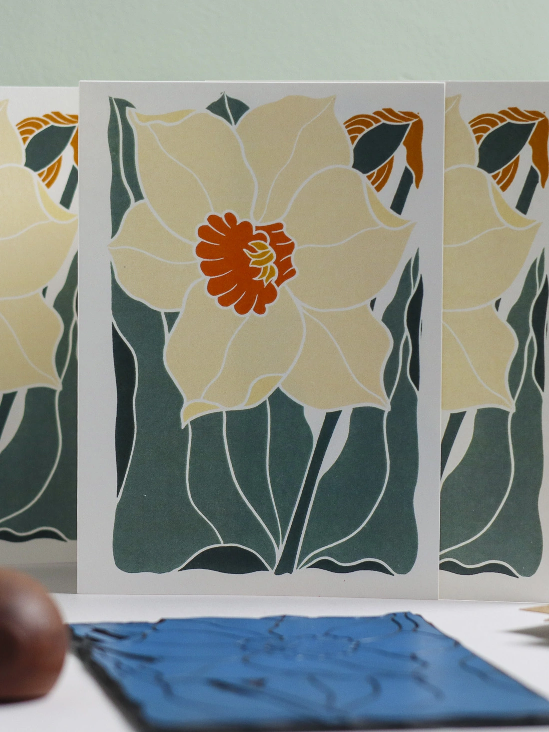 After carving each botanical portrait, I enhance the designs with bold, modern colour to create that distinctive cottagecore aesthetic: rooted in British craft tradition but utterly current. Each card is printed in-house in small batches on premium eco-friendly recycled cardstock, celebrating the humble wildflowers and garden blooms of the English countryside. Perfect for those who appreciate fine craft, English gardens, and the art of thoughtful, handwritten correspondence.