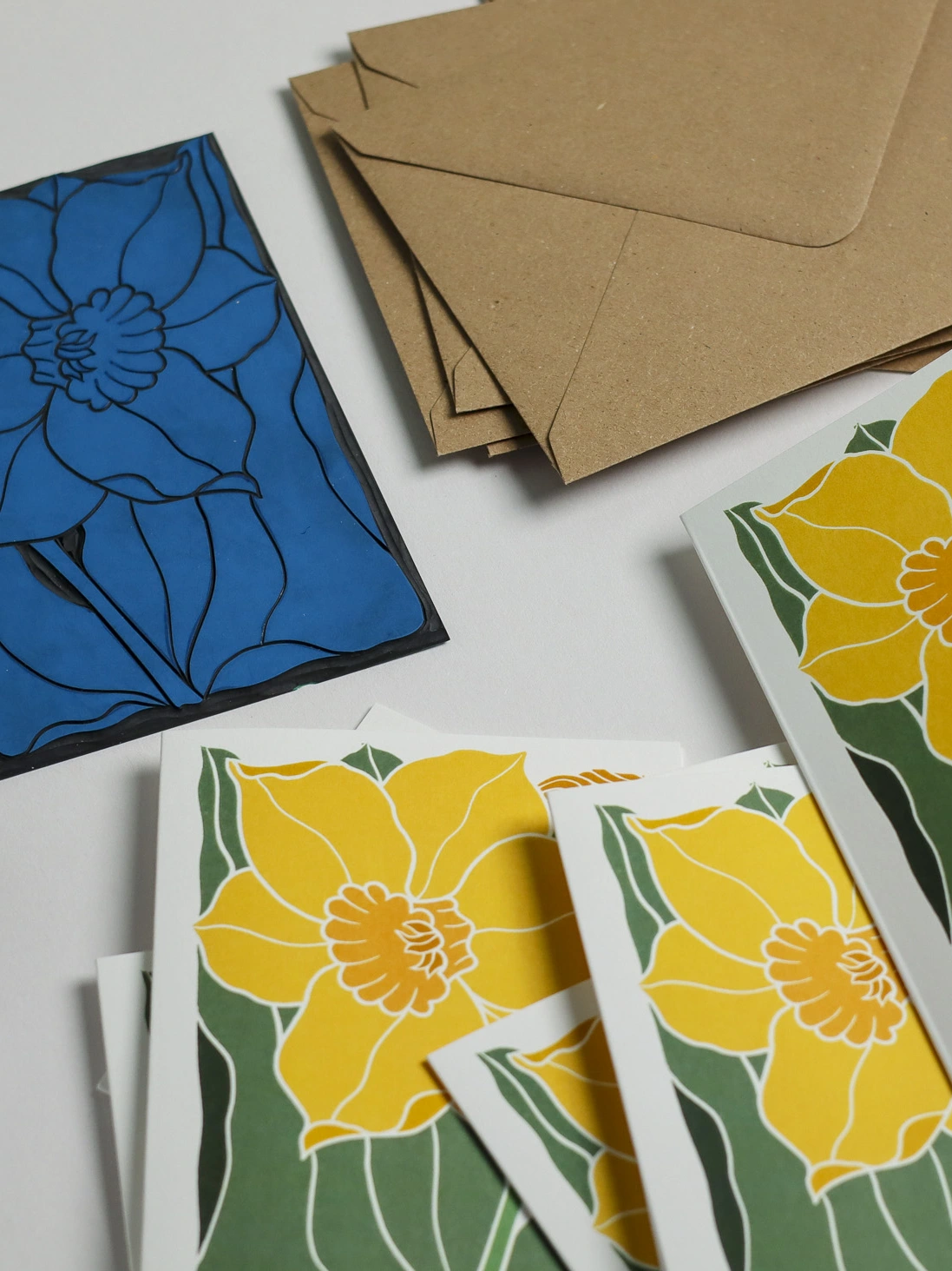 After carving each botanical portrait, I enhance the designs with bold, modern colour to create that distinctive cottagecore aesthetic: rooted in British craft tradition but utterly current. Each card is printed in-house in small batches on premium eco-friendly recycled cardstock, celebrating the humble wildflowers and garden blooms of the English countryside. Perfect for those who appreciate fine craft, English gardens, and the art of thoughtful, handwritten correspondence.