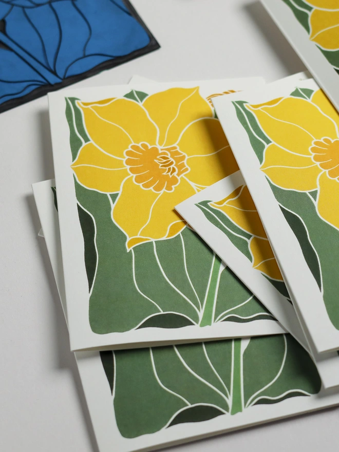 These botanical notecards are perfect for heartfelt correspondence, thank you notes, or elegant invitations. Each design begins as a hand-carved linocut print from my Norfolk studio - traditional relief printmaking meeting contemporary colour, created with real carving tools, real linoleum, and real patience.