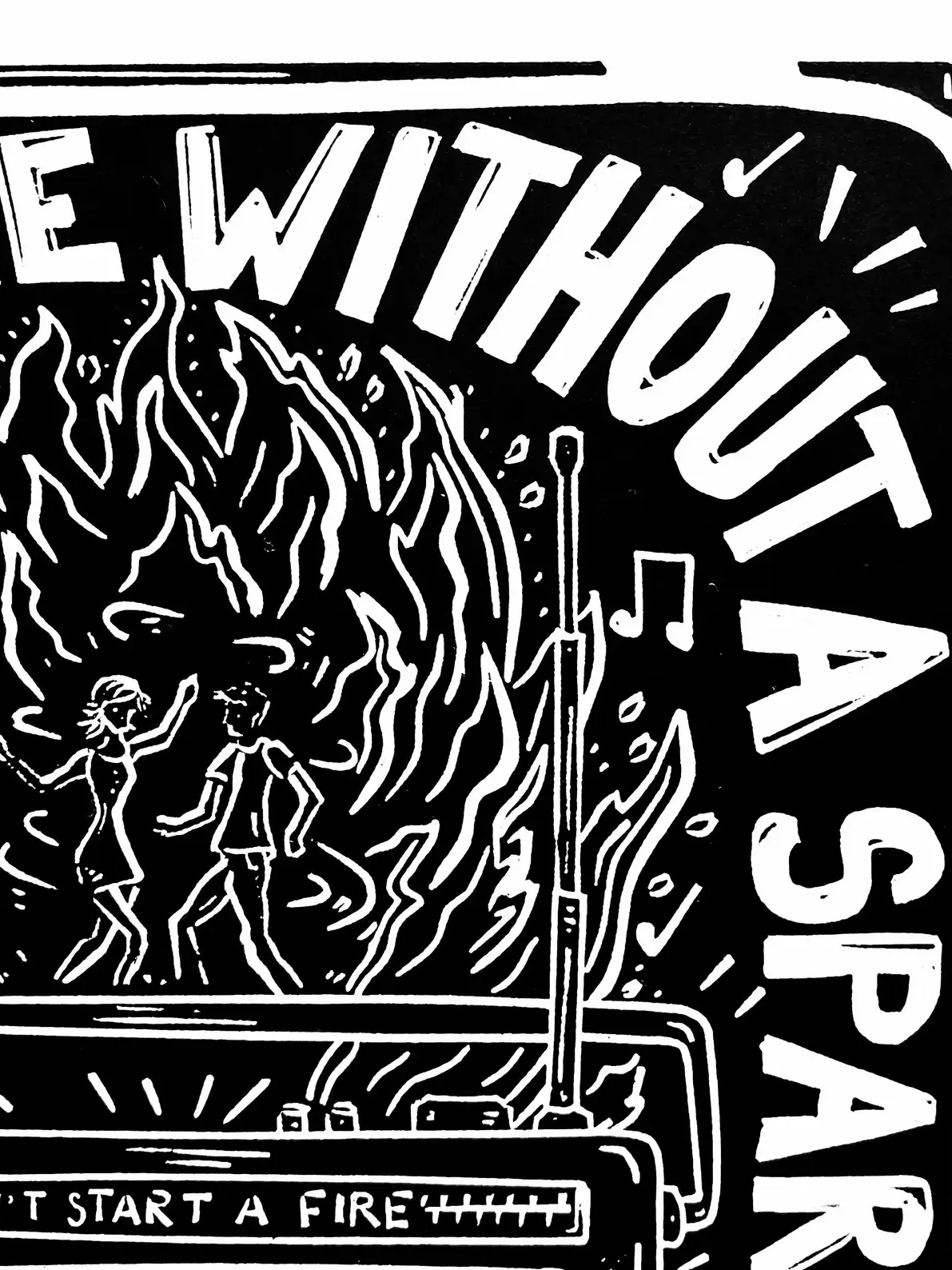 Original linocut print inspired by the song 'Dancing in the dark' by Bruce Springsteen, from the album 'Born in the U.S.A' released in 1984.