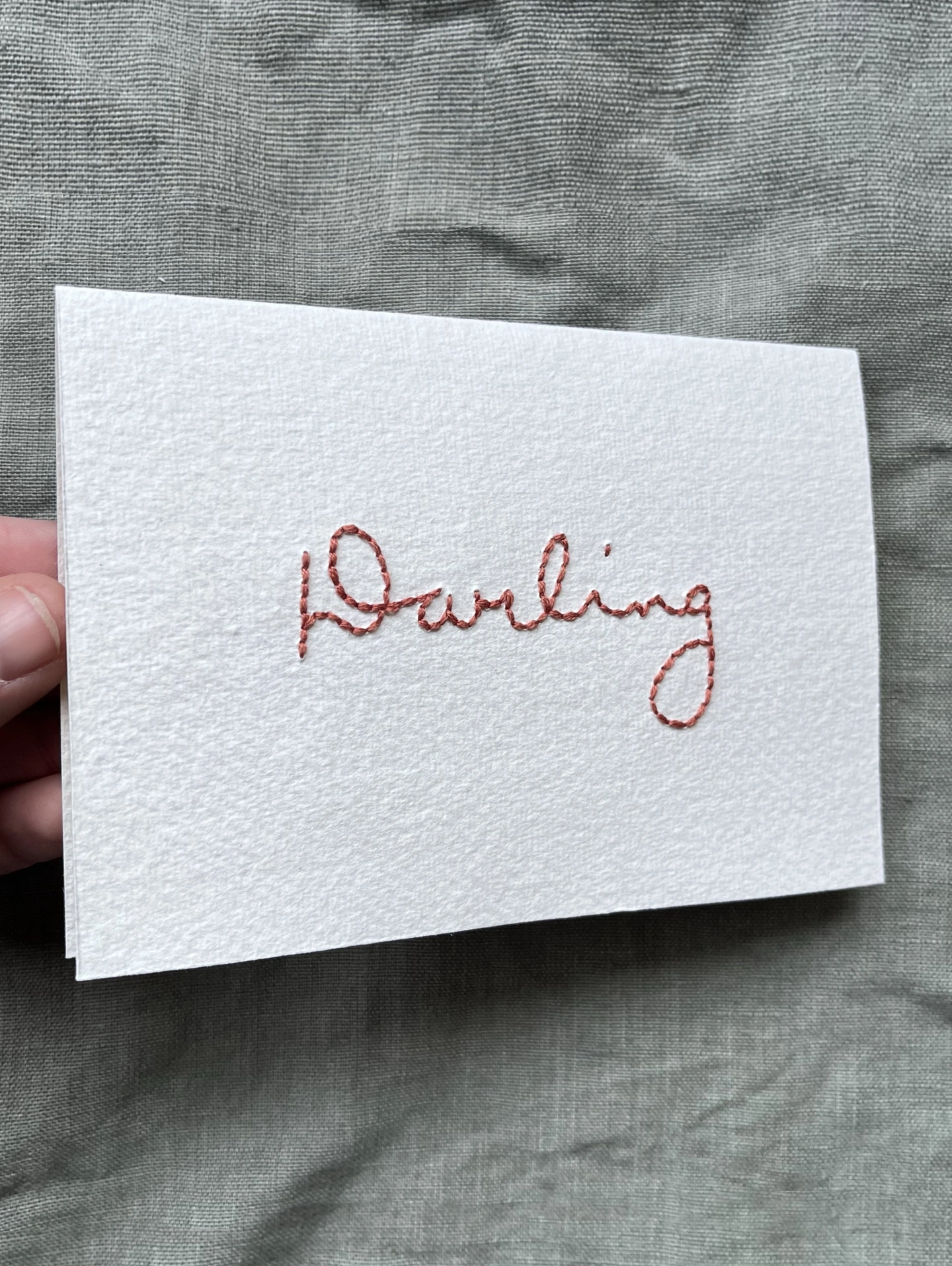 Hand embroidered card, stitched with cotton on thick khadi paper.