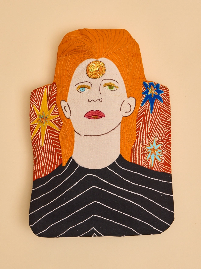 A cosy homage to British musical greats, The Jacksons' hand-embroidered hot water bottle cases bring a bold splash of rock 'n' roll to your winter warm-up. Featuring three of the UK’s most legendary music icons—David Bowie, Amy Winehouse, and Elton John—these one-of-a-kind covers are where art meets home comfort. From Bowie’s otherworldly gaze to Amy’s signature beehive and eyeliner flick, and Elton’s flamboyant sparkle, every element celebrates the spirit of these three unforgettable artists.